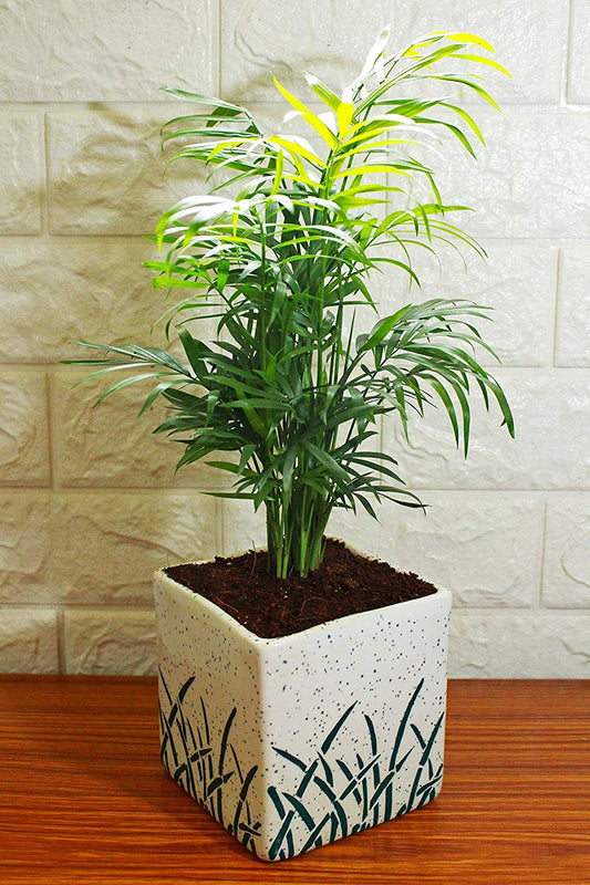 Air Purifying Parlour Palm Chamaedorea Elegans in White Cube Aroez Ceramic Pot