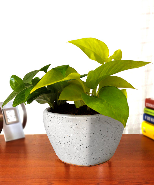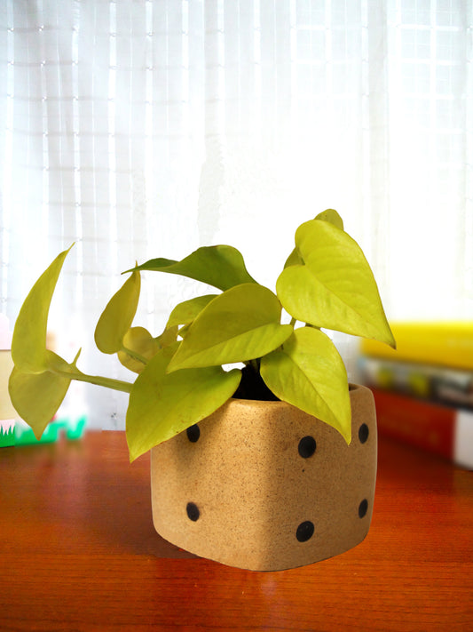 Good Luck Air Purifying Golden Money Plant in Brown Dice Ceramic Pot