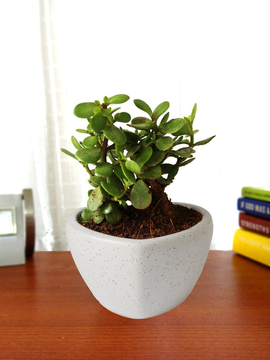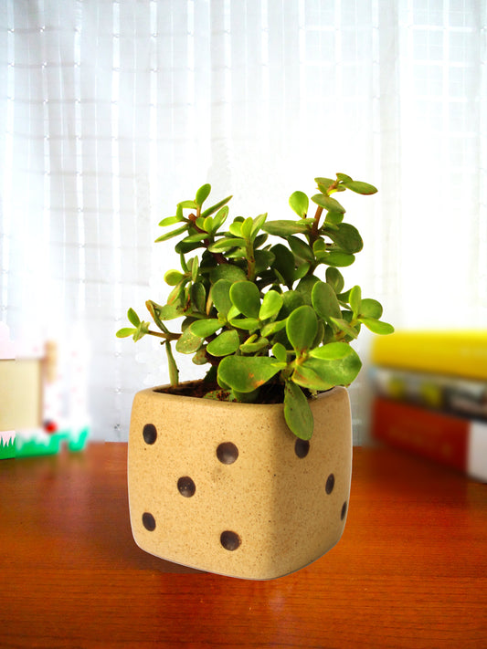 Good Luck Jade Plant in Brown Dice Ceramic Pot