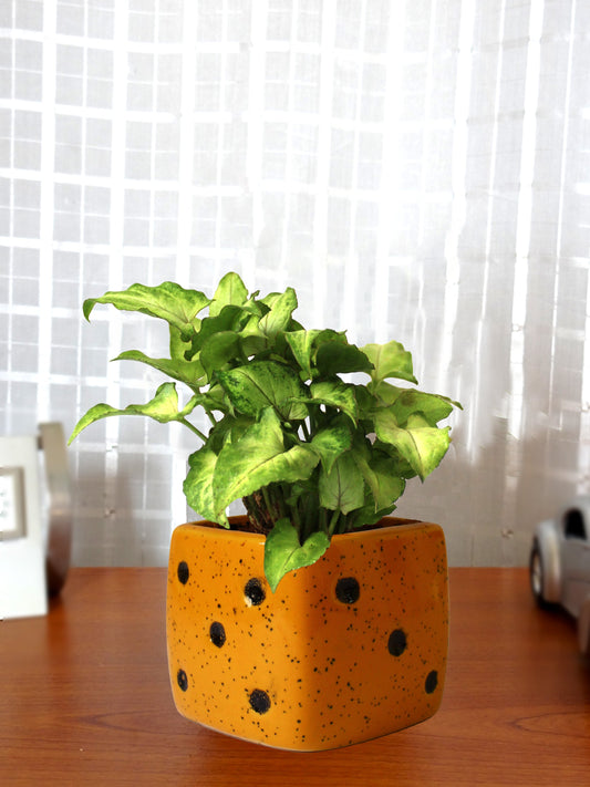 Good Luck Air Purifying Green Syngonium Plant In Yellow Dice Ceramic Pot