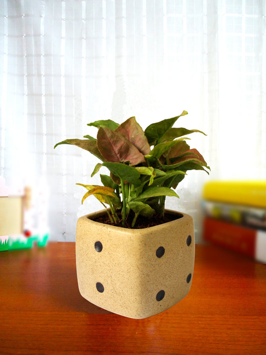 Good Luck Air Purifying Pink Syngonium Plant in Brown Dice Ceramic Pot