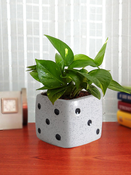 Good Luck Air Purifying Golden Money Plant in Brown Dice Ceramic Pot