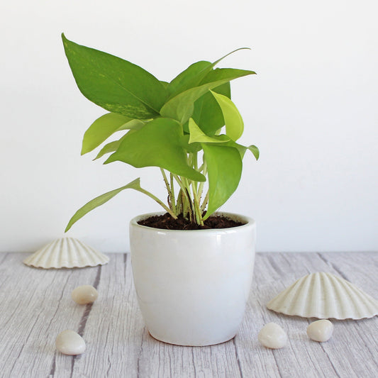 Rolling Nature Good Luck Air Purifier Golden Pothos Money Indoor Plant in White Pear Glacier Ceramic Pot
