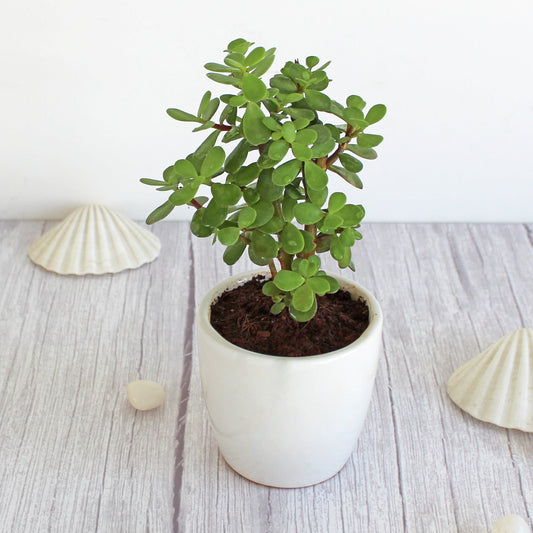Rolling Nature Good Luck Jade Plant in White Pear Glacier Ceramic Pot
