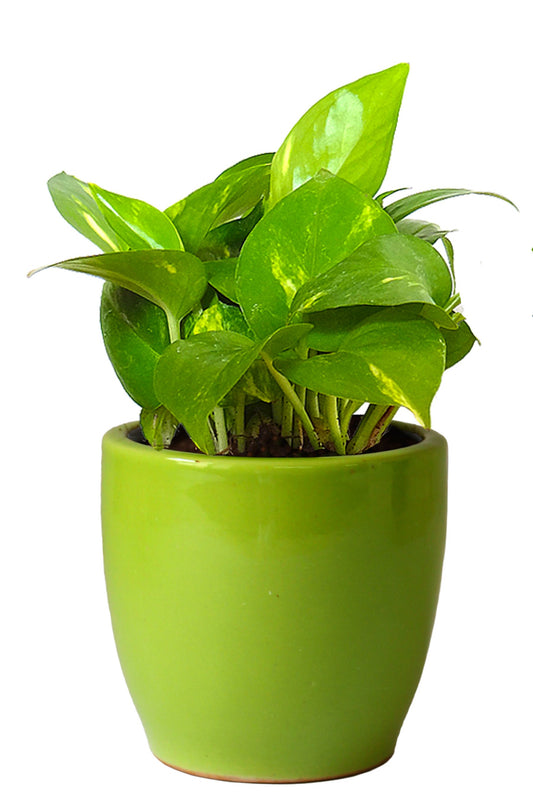 Rolling Nature Good Luck Air Purifying Golden Money Plant in Green Pear Ceramic Pot