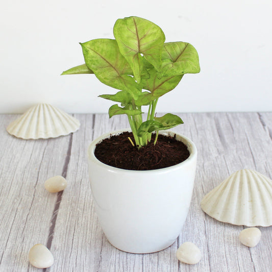 Rolling Nature Good Luck Air Purifier Green Syngonium Indoor Plant in White Pear Glacier Ceramic Pot
