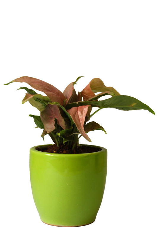 Rolling Nature Good Luck Air Purifying Pink Syngonium Plant in Green Pear Ceramic Pot
