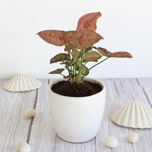 Rolling Nature Good Luck Air Purifier Pink Syngonium Indoor Plant in White Pear Glacier Ceramic Pot