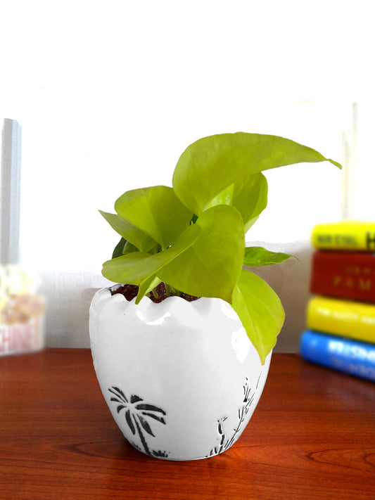 Bring some flare to your interiors. These pots are glossy and come in yellow and white shade and are doubly fired for that extra glazed look. The bold contrasting colors and black birld design make them a style statement when kept indoors. Eye catching and beholding, Ruffel is one of our best sellers. The freshest air purifying plants, or good luck plants in these bold planters will bring the "Bright" factor to any space.
