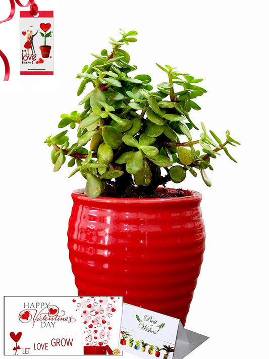 Valentine's Day Combo of Good Luck Air Purifying Jade Plant in Red Ceramic Pot