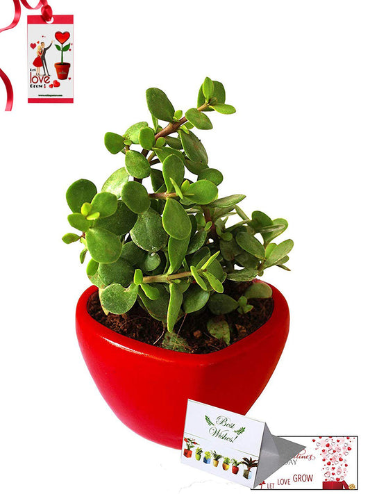 Valentine's Day Combo of Good Luck Air Purifying Jade Plant in Red Heart Ceramic Pot