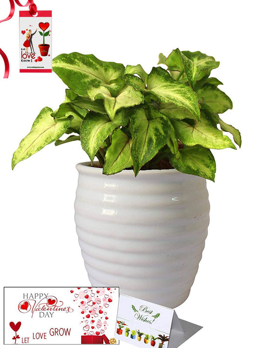 Valentine's Day Combo of Good Luck Air Purifying Green Syngonium Plant in White Ceramic Pot