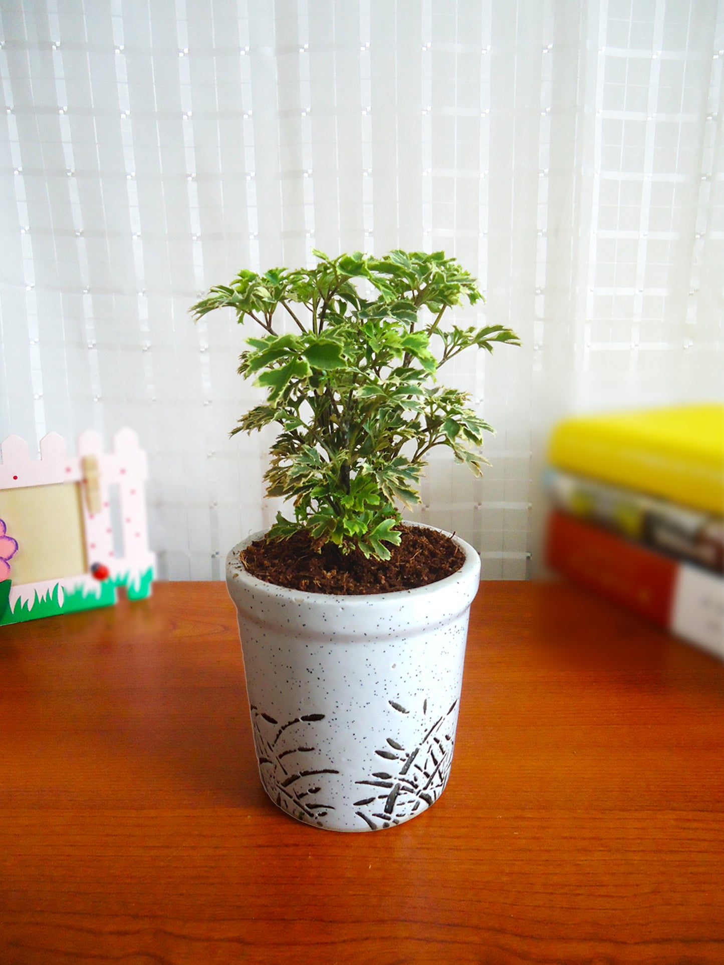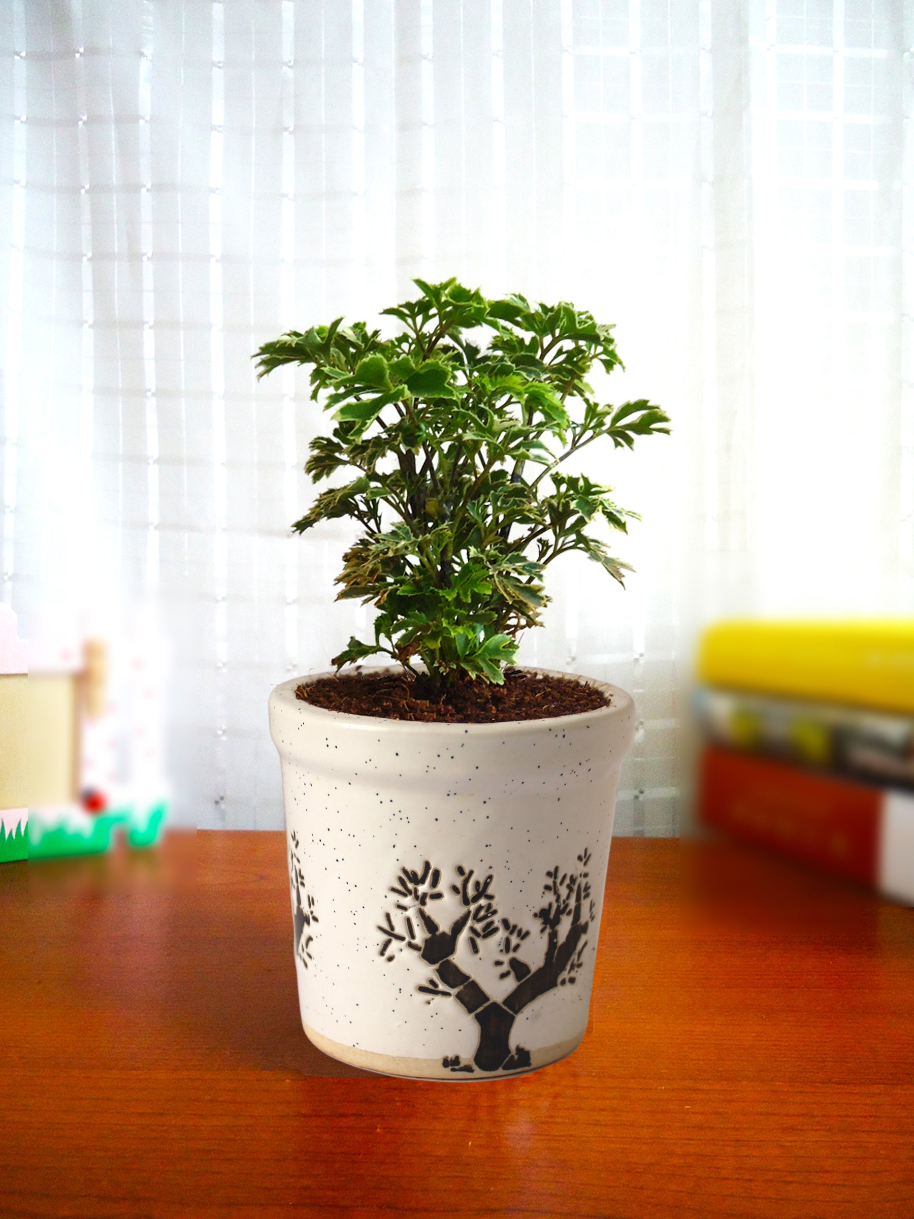 Bring your garden inside with elegant indoor plants & embossed ceramic pots from Rolling Nature. Rolling Nature's Aroez ceramic pot collection designs are inspired by Italian Sgraffito pottery. The pot is made from high quality ceramic to ensure durability and longevity. These piece of arts with beautiful green plants in them will mesmerize you. The beautiful evergreen aralia is an exclusive product by rolling nature. It will add an aesthetic appeal to your office desk or dining table. A perfect gift for someone special, its cute and trendy and is sure to win hearts of those who receive it. Aralias are beautiful plant with lacy leaves and the rounded leaflets. This variegated aralia has tightly crinkled leaves with green and white colour. Although variegations run from gold, cream or white, to solid green. Light : Place Aralia in medium to high light. They grow well in moderate light.