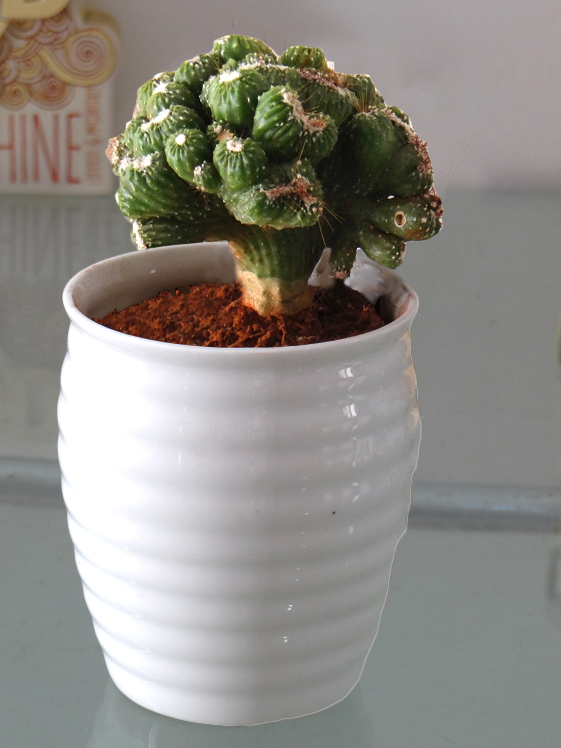 Cereus sp. mostruosus cristatus or Monster cactus produces lots of sculptural green monstrous and crested shapes with very short amber to reddish spines and woolly areoles. It is one of the most sought rare cactus for cacti lovers. This cactus is a slow growing and attractive plant that forms myriads of sculptural monstrous and crested shapes. Succulent care is easy and they can brighten any indoor space. If you're looking for beautiful and interesting succulents, look no further! Rolling Nature exotic succulent collection in ceramic planters is a true ornamental plant delight for any succulent lover.