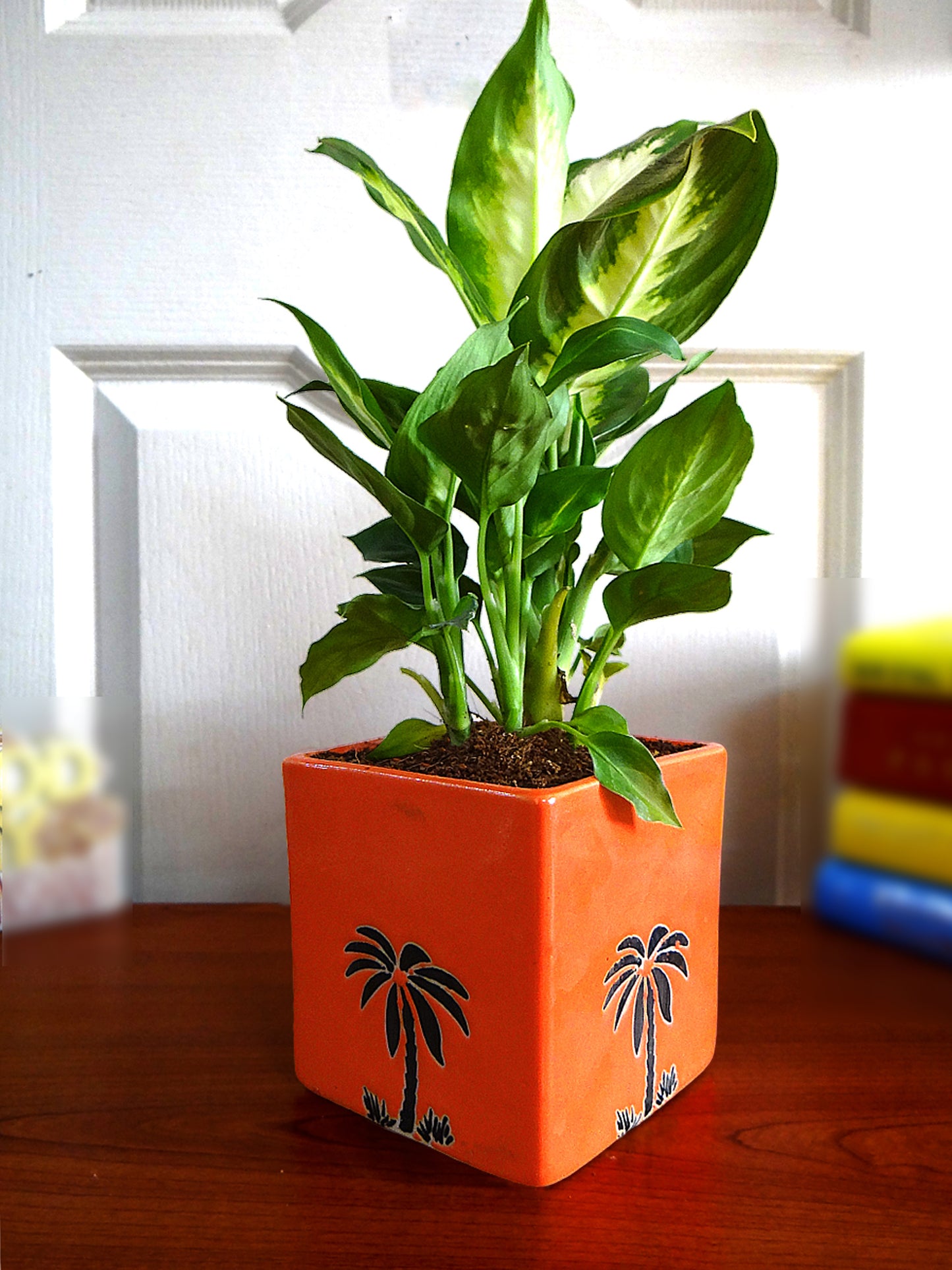 Dieffenbachia Camilla Plant in Orange Cube Aroez Ceramic Pot