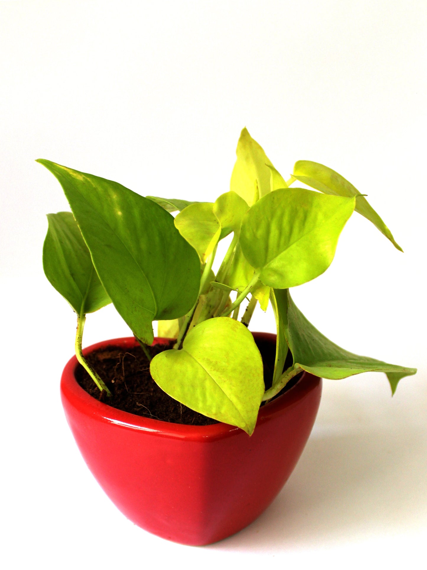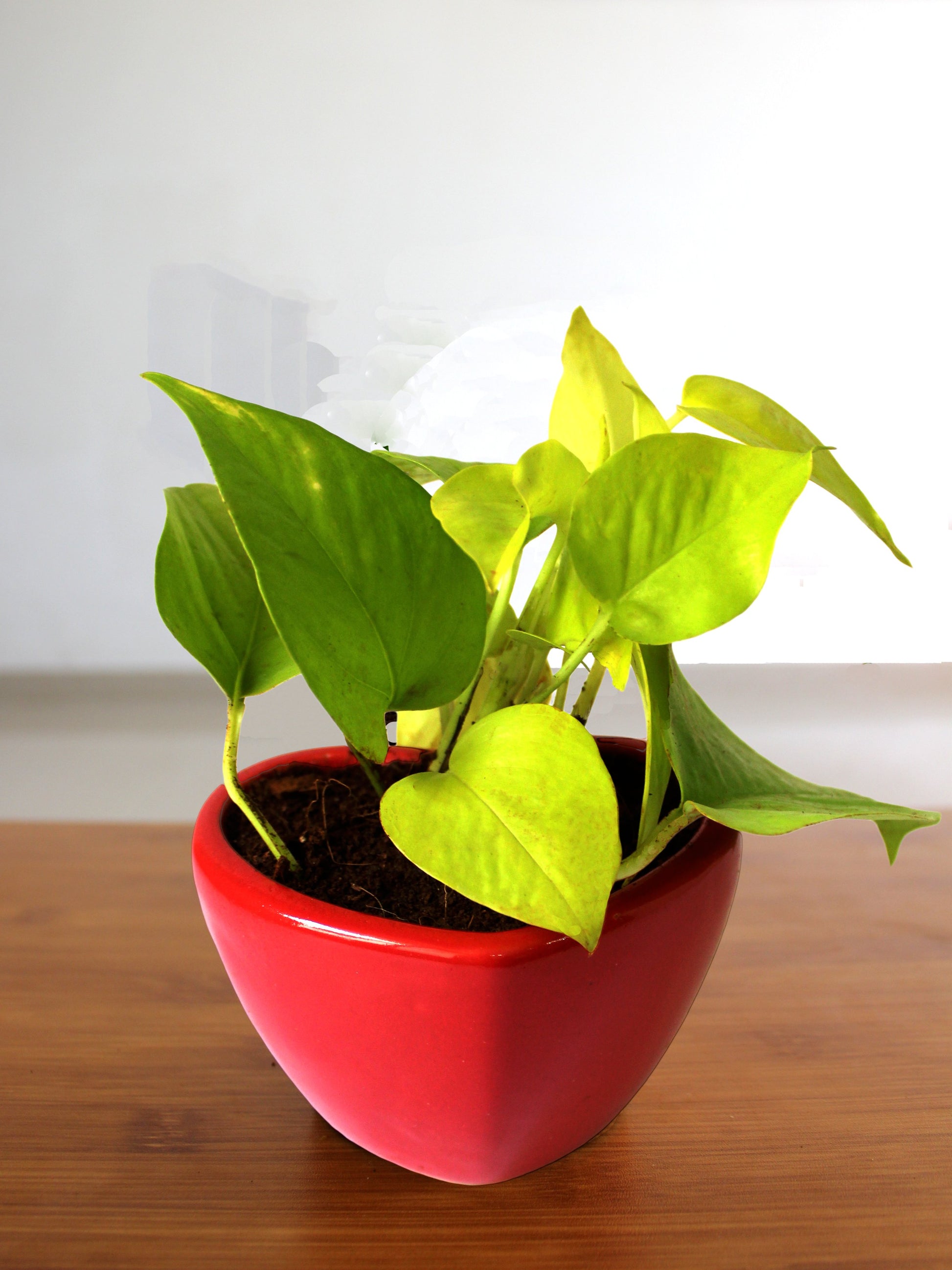 Good Luck Air Purifying Golden Money Plant in Red Heart Ceramic Pot