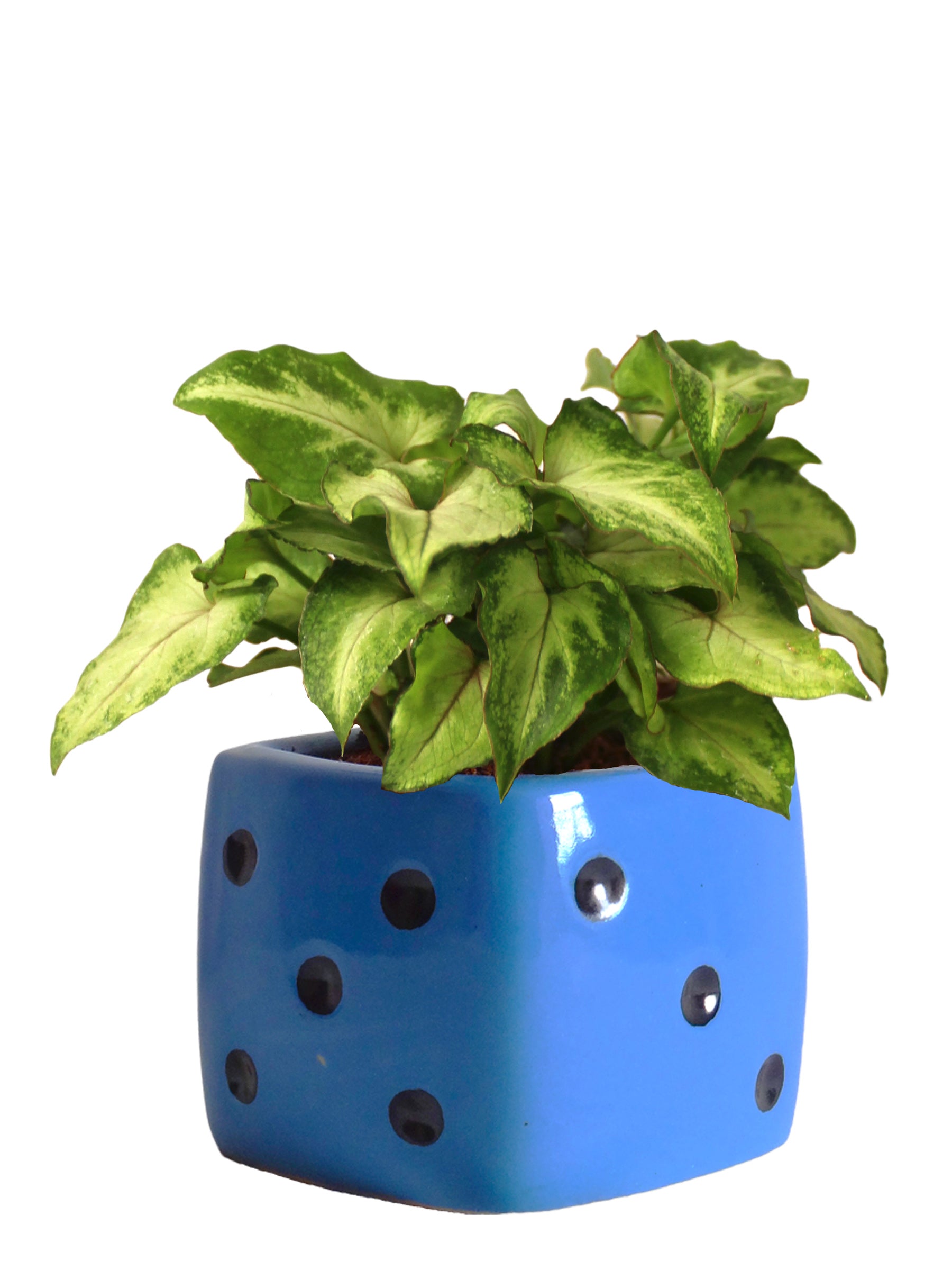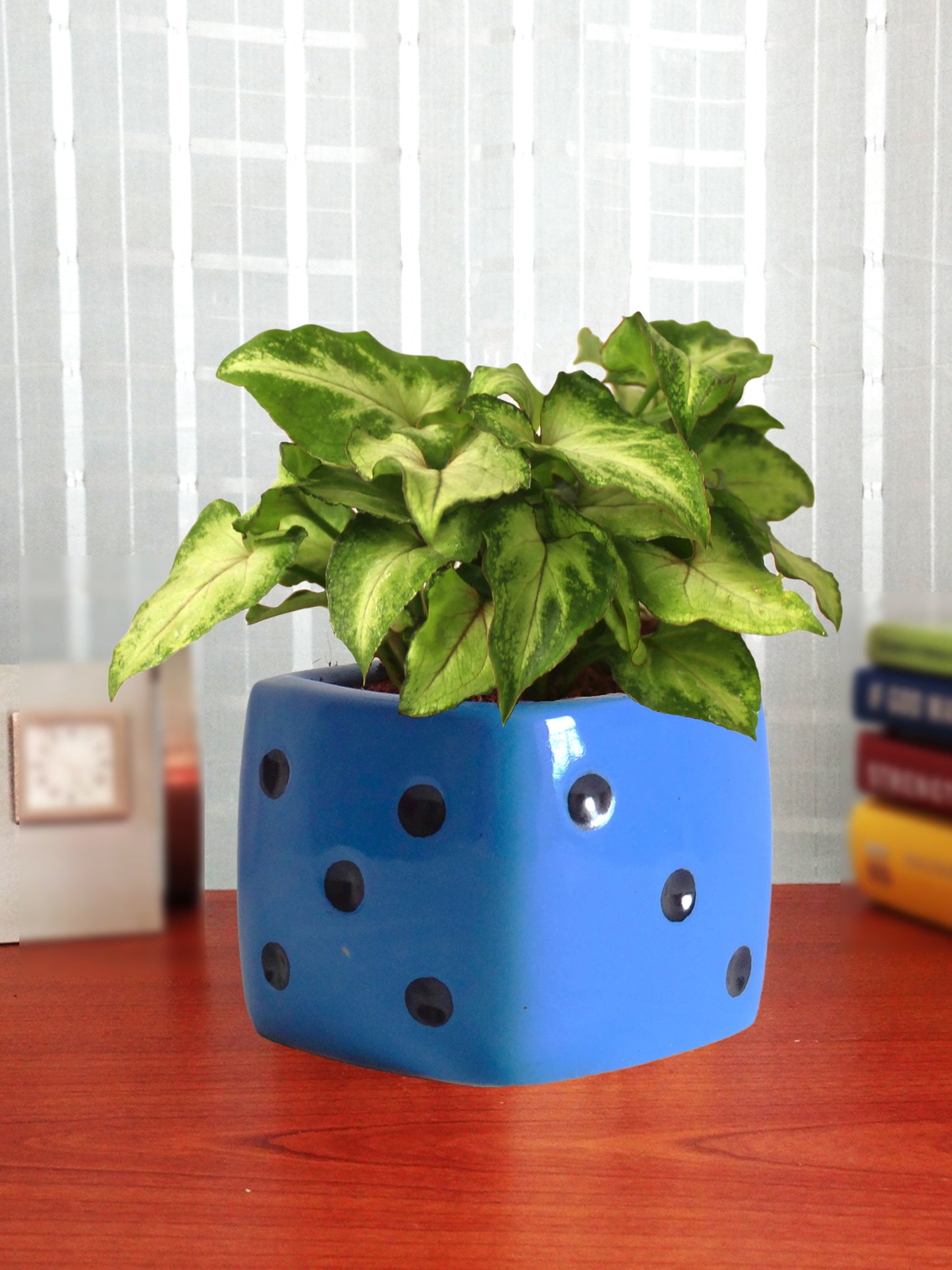 Good Luck Air Purifying Green Syngonium Plant In Blue Dice Ceramic Pot