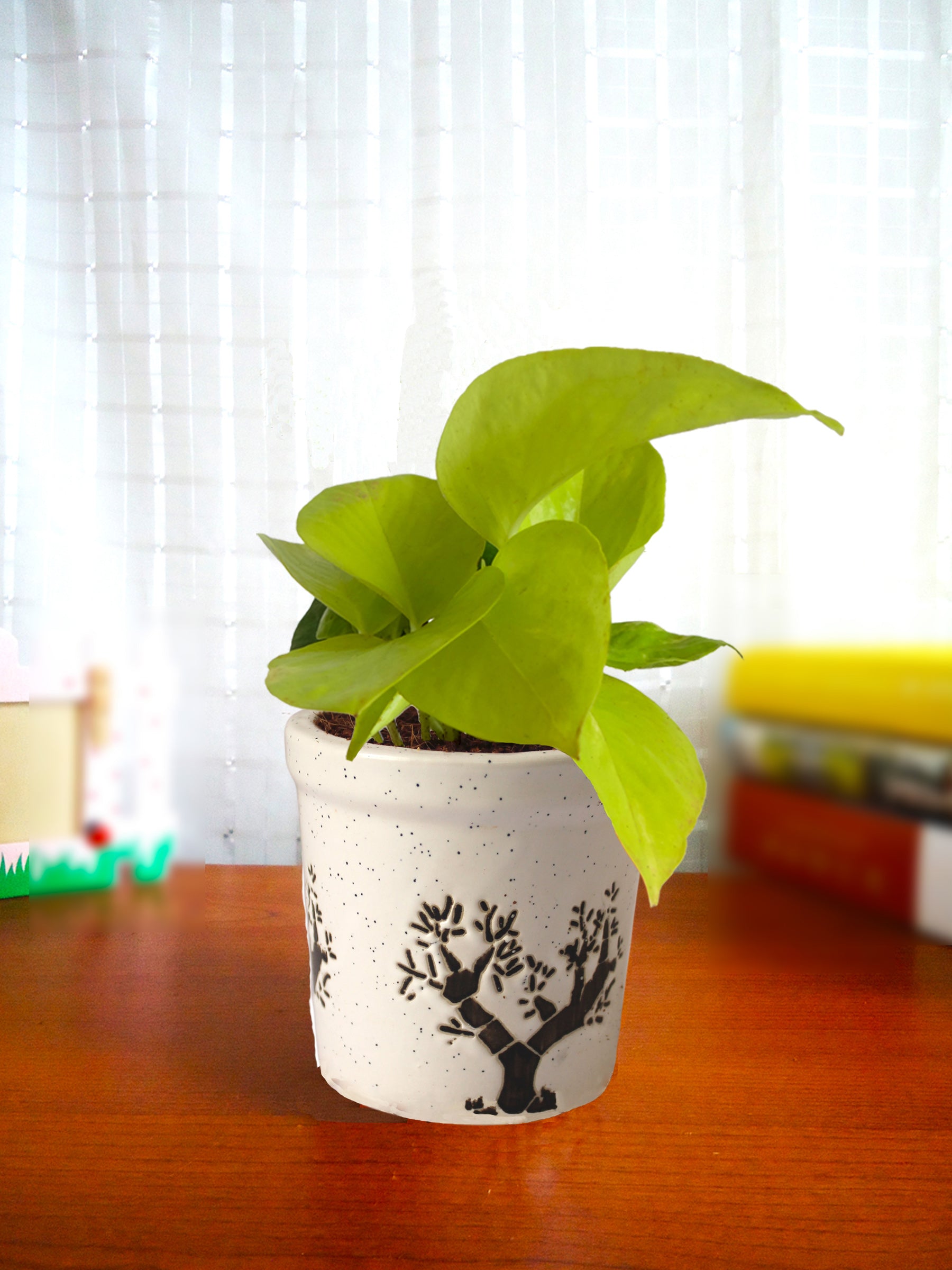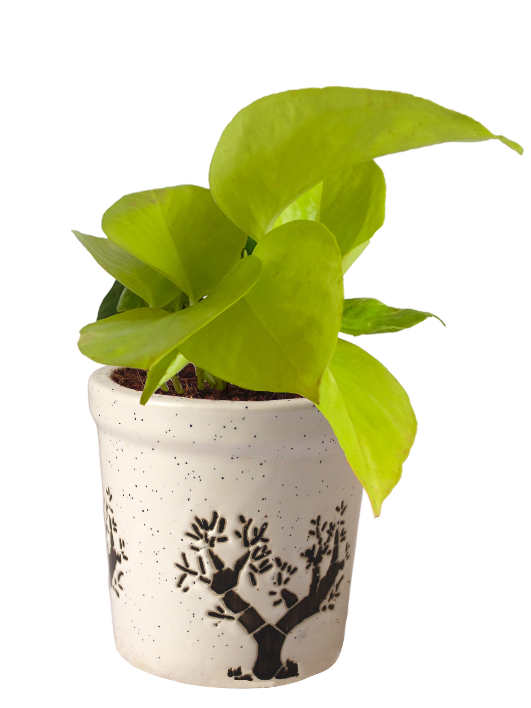 Good Luck Air Purifying Live Golden Money Plant in White Jar Aroez Ceramic Pot
