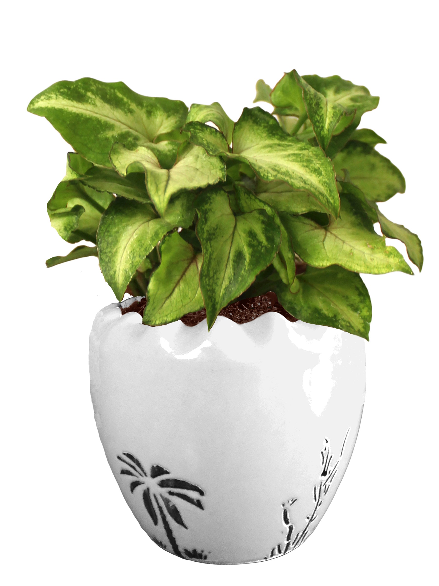 Good Luck Air Purifying Live Green Syngonium Plant in White Ruffel Aroez Ceramic Pot