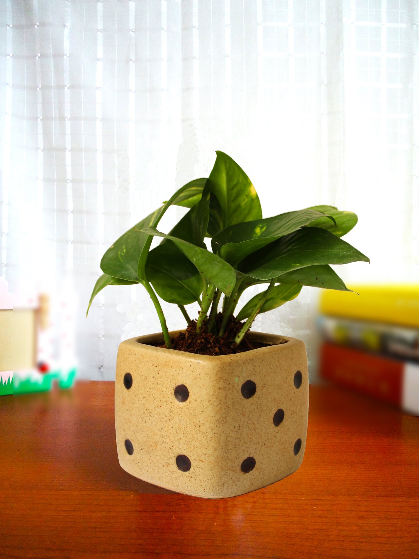 Good Luck Air Purifying Money Plant in Brown Dice Ceramic Pot