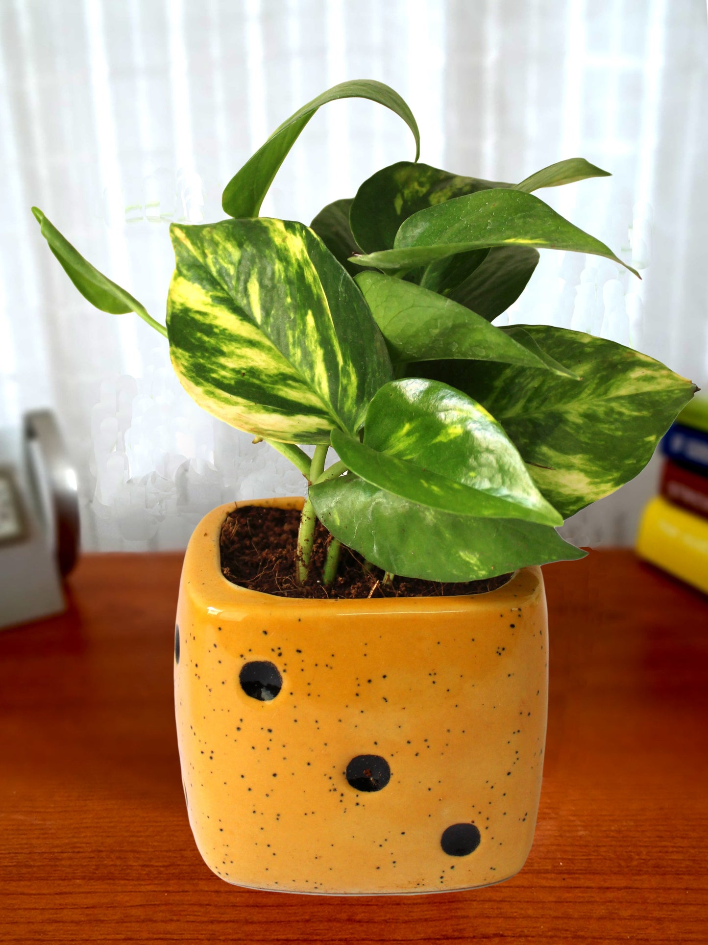 Good Luck Air Purifying Money Plant in Yellow Dice Ceramic Pot