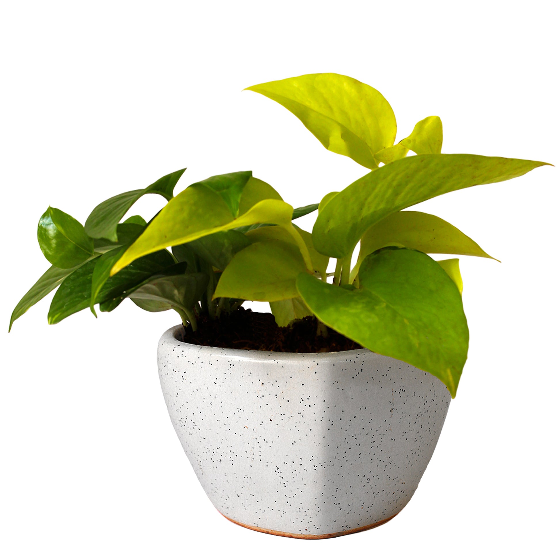Rolling Nature's Green and Golden Money plant duet is one of a kind ravishing display of natural hues! Plant Duet is a unique, creative concept from Rolling Nature, where you get two different plant varieties in one pot. These plants bring good luck through fengshui. Put together, both plants symbolise love, luck, harmony, cooperation and peace in mutual living. Duet conveys the message that" We may grow as two different entities but our roots will always remain same". Money Plants are luck bringing beautiful evergreen plants which require minimal care and are easy to maintain. Money plants bring wealth, health, prosperity and happiness in the house, according to Fengshui and Vastu. Place them in the southeast of your home. Avoid keeping the money plant in Northeast corner of the house. Scientists recommend keeping one plant near each computer, television, or WiFi router to absorb radiations. Also, Placing a money plant in front of a sharp corner or angle reduces anxiety and stress. They act as air purifiers too. They are efficient at removing airborne toxins such as formaldehyde and carbon monoxide.