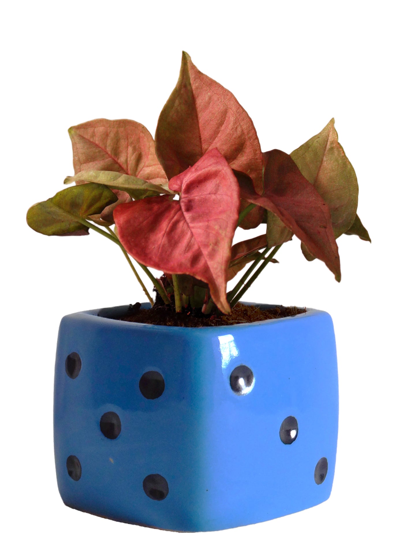 Good Luck Air Purifying Pink Syngonium Plant In Blue Dice Ceramic Pot