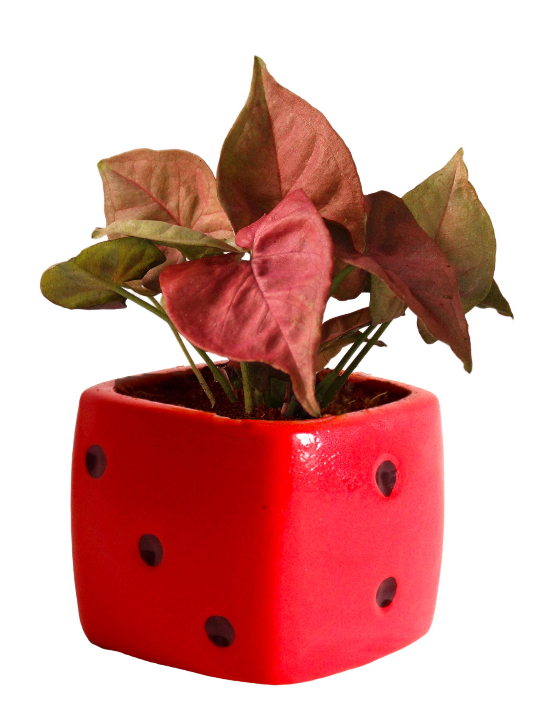 Good Luck Air Purifying Pink Syngonium Plant in Red Dice Ceramic Pot
