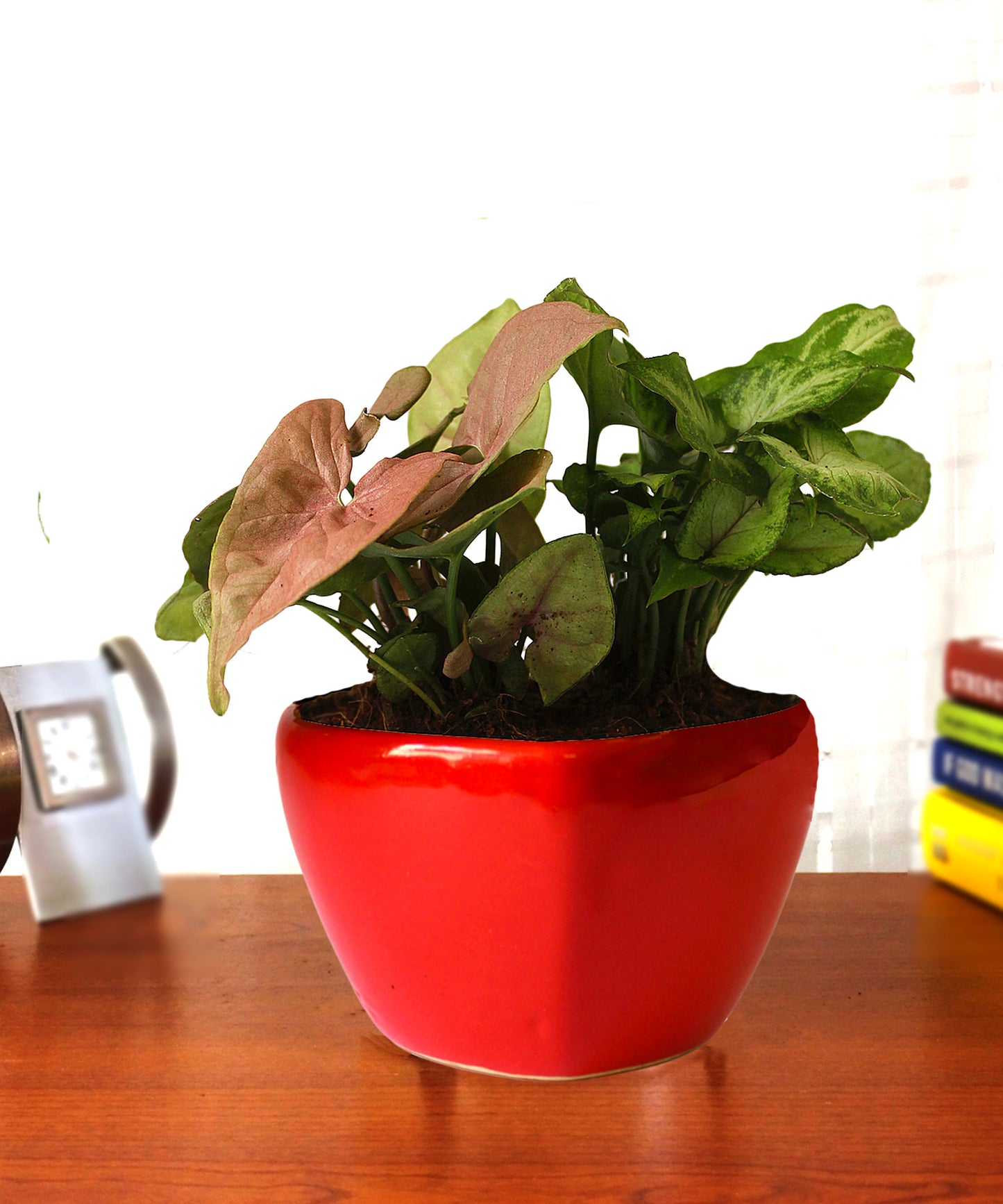 Good Luck Air Purifying Syngonium Plants Duet in Red Heart Ceramic Pot