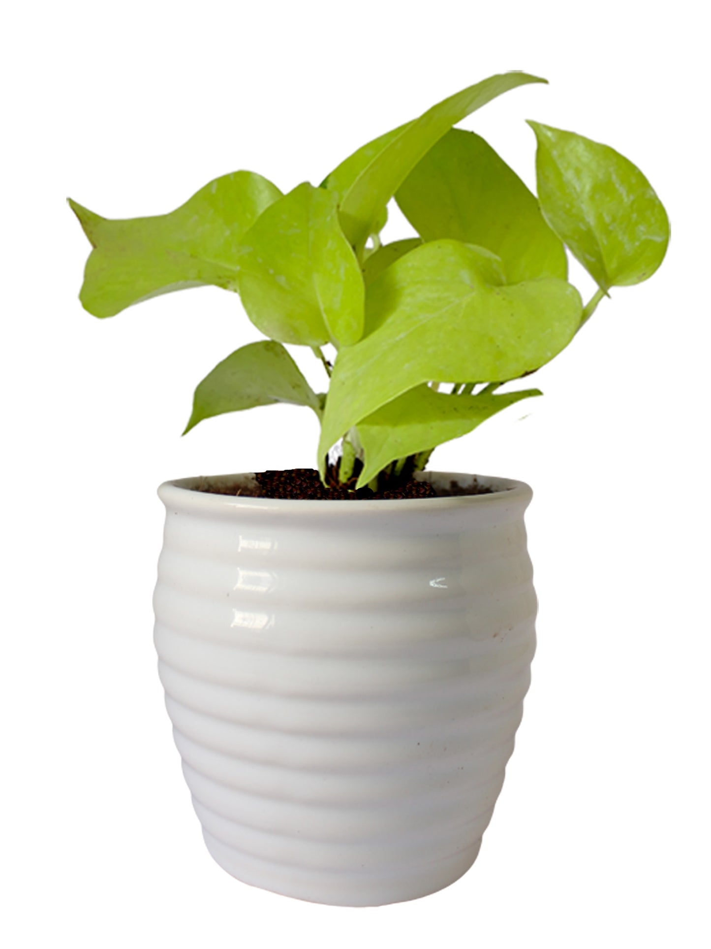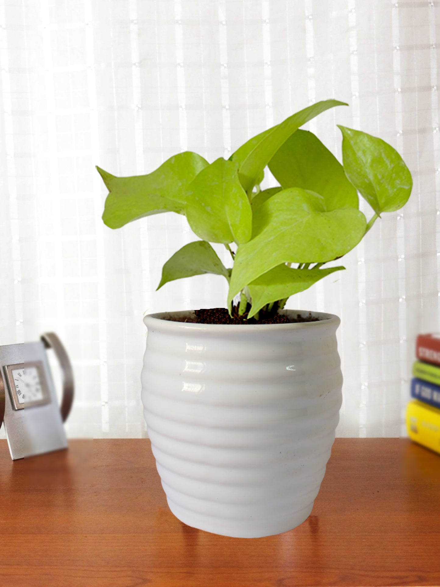 Adorn your house with golden money plant in this serene white ceramic planter OR give a beautiful gift of good luck money plant to your loved one, perfect for any occasion. Good for indoors and outdoors both. Money Plants are amazing plants, which require minimum care. Money Plants are perfect houseplants. They are considered as lucky plants, which bring wealth, health, prosperity and happiness in the house, according to Fengshui. They also act as air purifiers. They are efficient at removing airborne toxins such as formaldehyde and carbon monoxide.