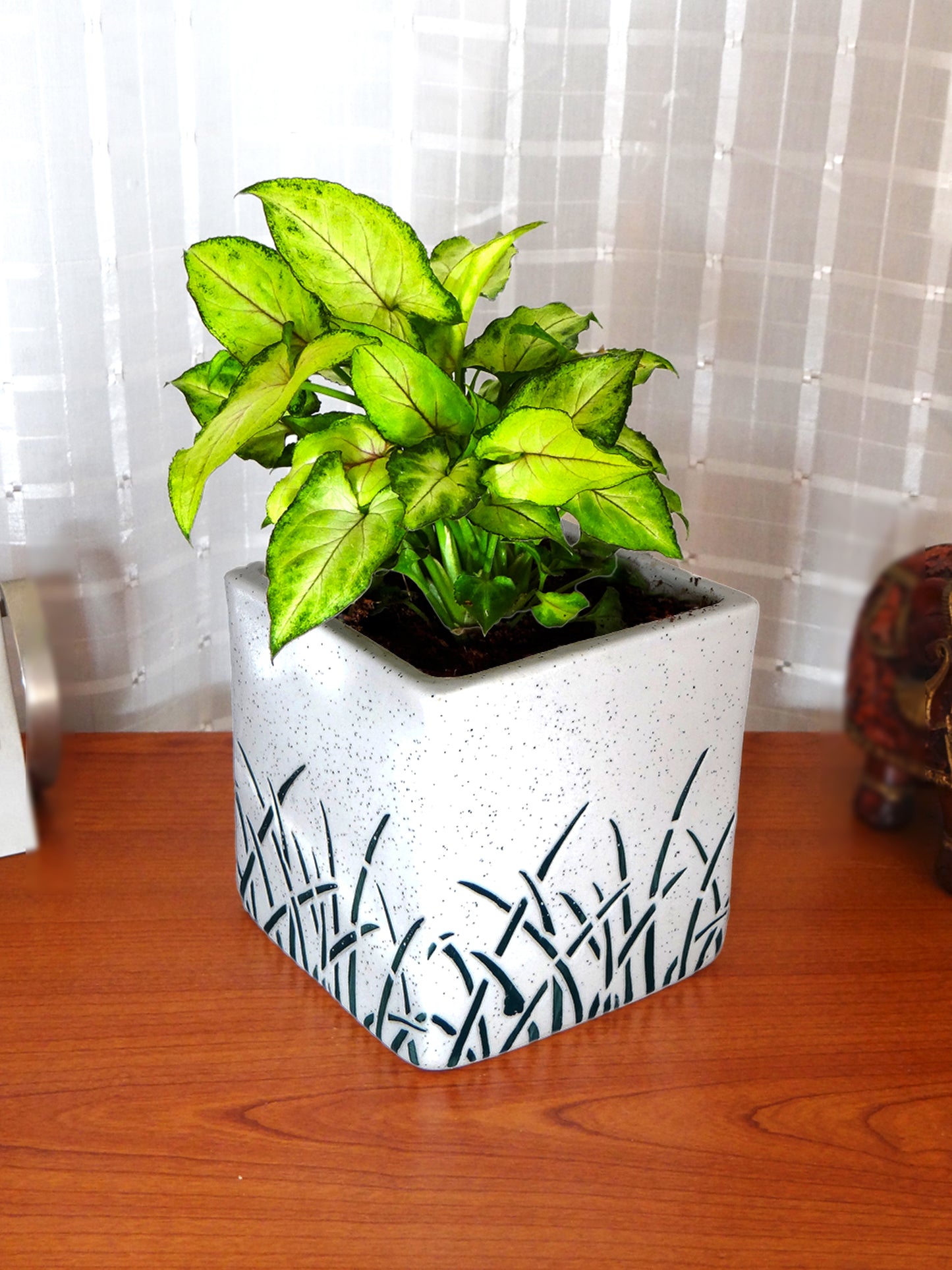 Good Luck Green Syngonium in White Cube Aroez Ceramic Pot