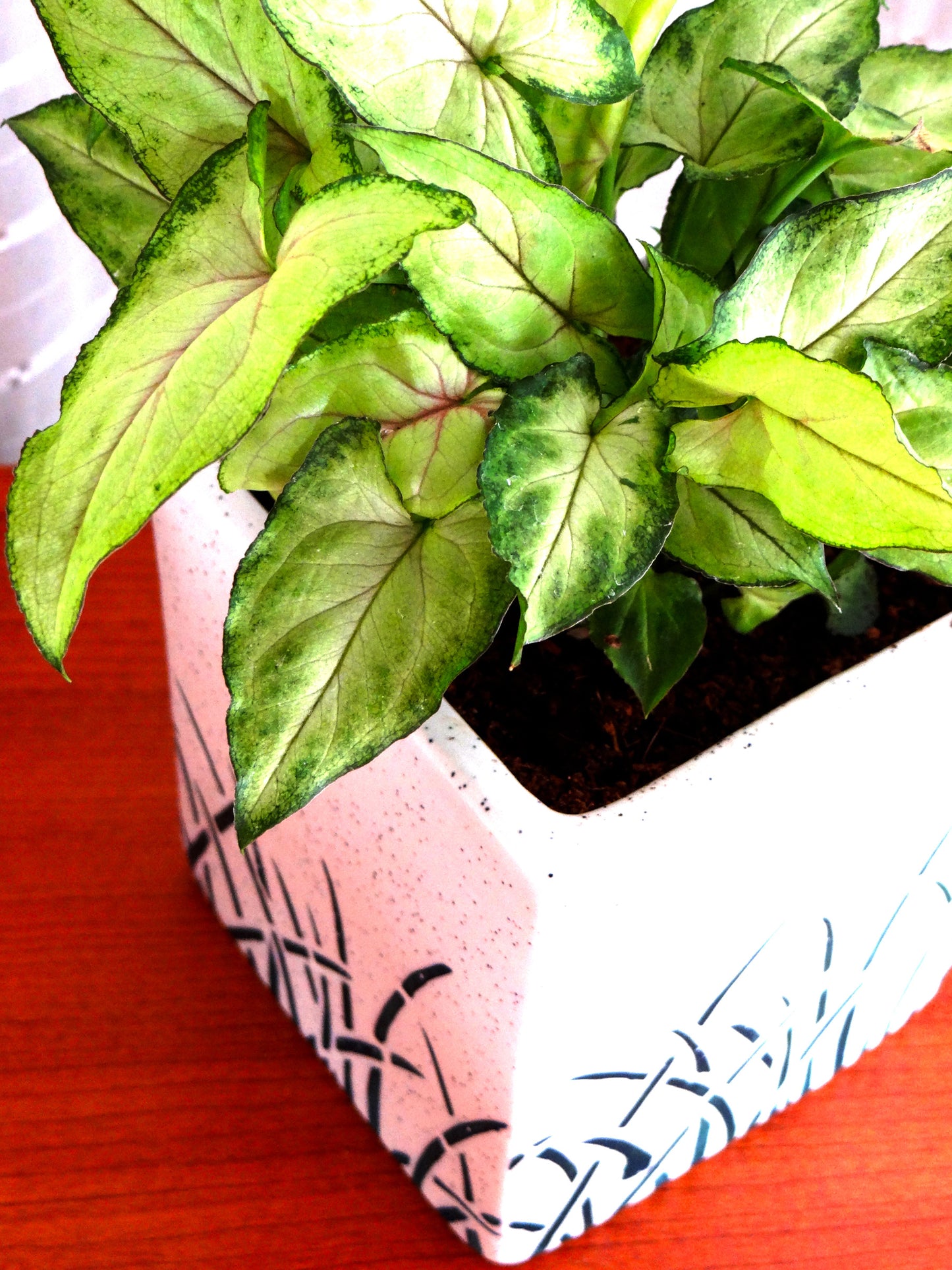 Bring your garden inside with elegant indoor plants & embossed ceramic pots from Rolling Nature. Rolling Nature's Aroez ceramic pot collection designs are inspired by Italian Sgraffito pottery. The pot is made from high quality clay to ensure durability and longevity. These piece of arts with beautiful green plants in them will mesmerize you. Living plants indoors enhances your decor with several other benefits such as airpurification and humidification! A perfect house plant. The five lobed shape of Syngonium podophyllum/ Goosefoot leaves represents the 5 Feng Shui elements; water, fire, earth, wood and metal. Thus it perfectly balances Yin and yang energy and encourages positive chi or energy. It also cleanses the air. It has the inspiring; 'upward' wood energy, which is associated with the east or southeast. Place it on a desk or workstation to let its spirit of spring; dawn, youth and new ideas aid inspiration. Syngonium is an easy to care for plant that is well adapted to indoor environments. Its dark-green leaves have silvery white, green or pink or cream variegation, making this a decorative and popular house plant.