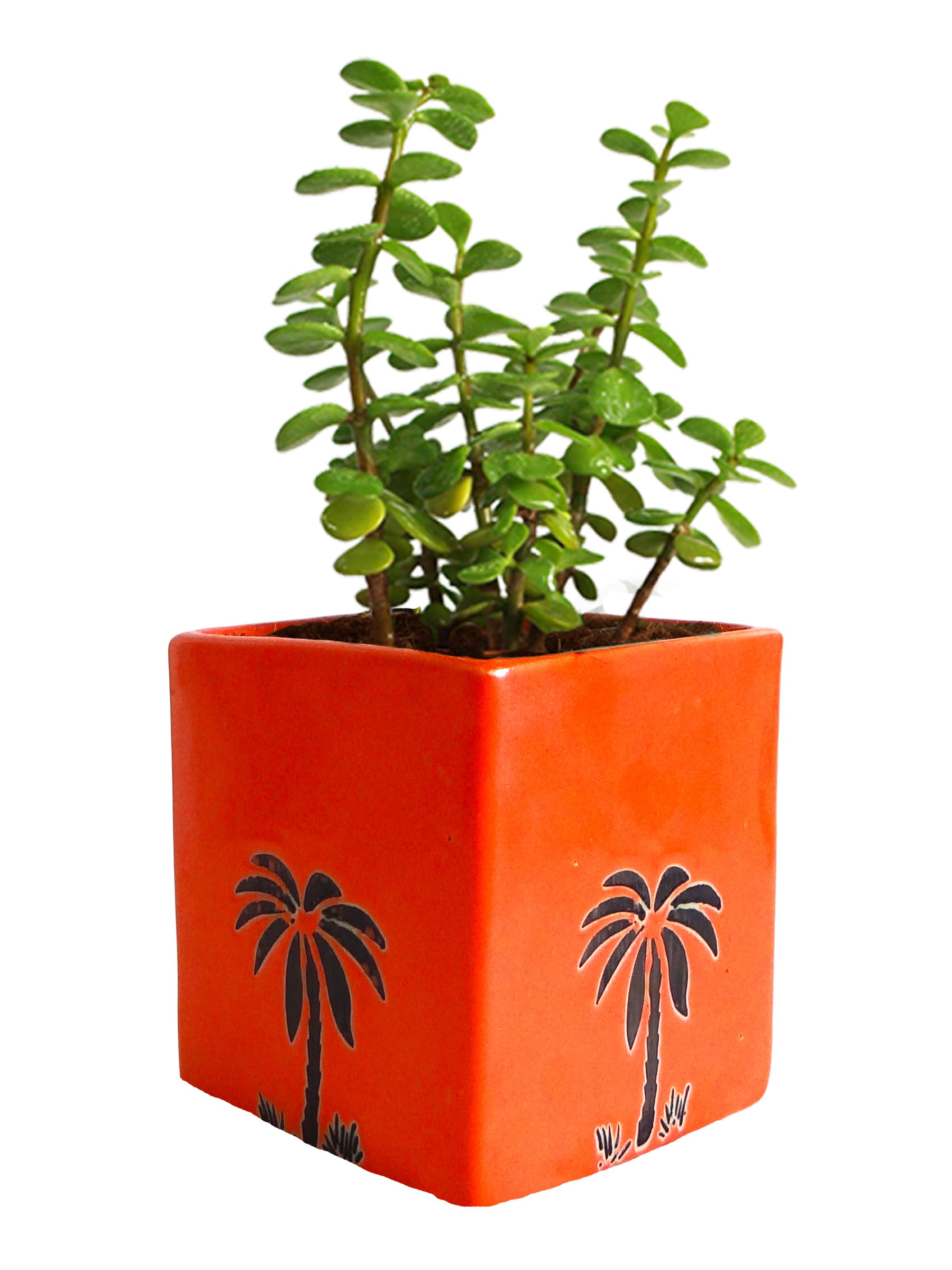 Good Luck Jade Plant in Orange Cube Aroez Ceramic Pot
