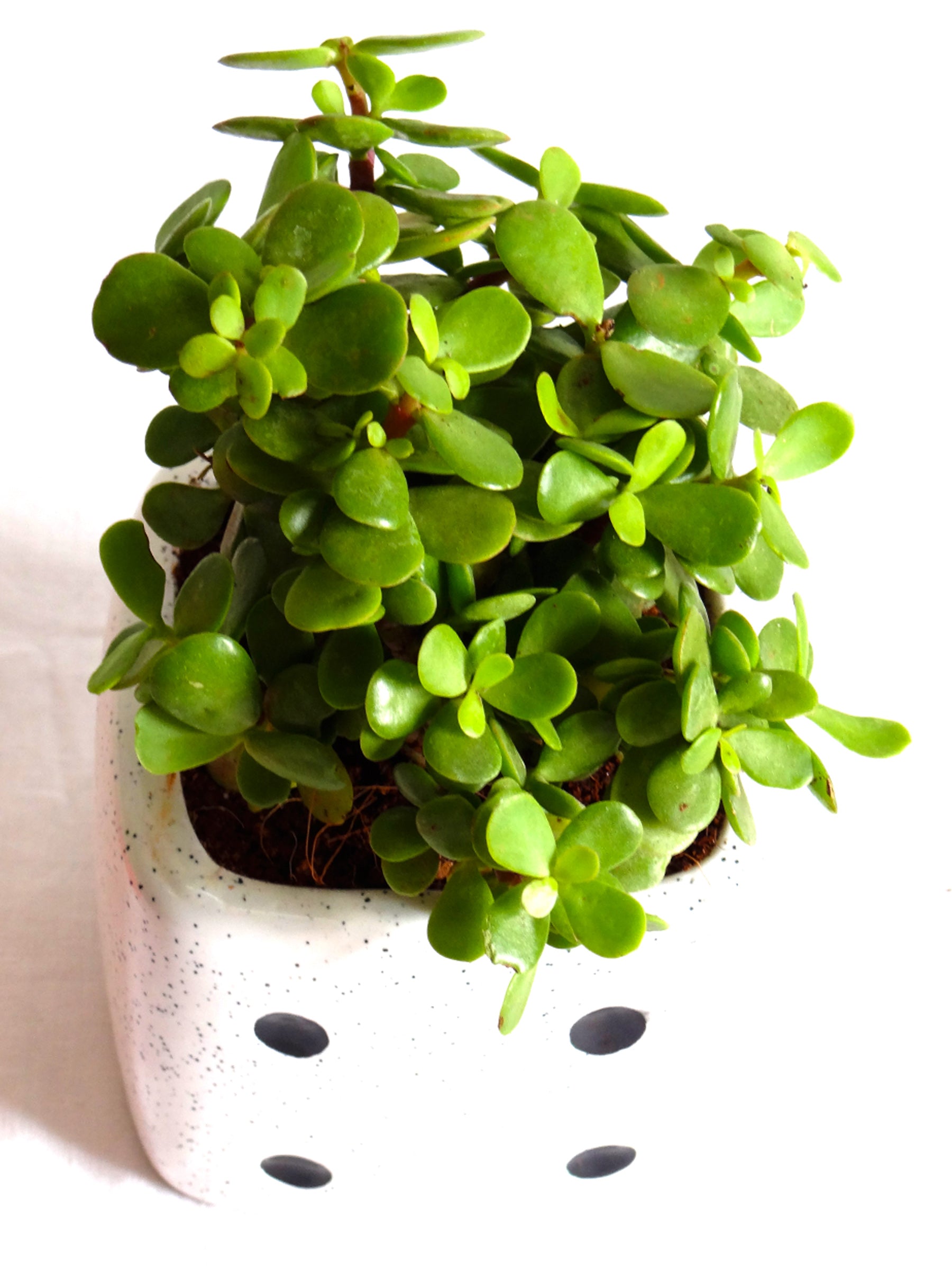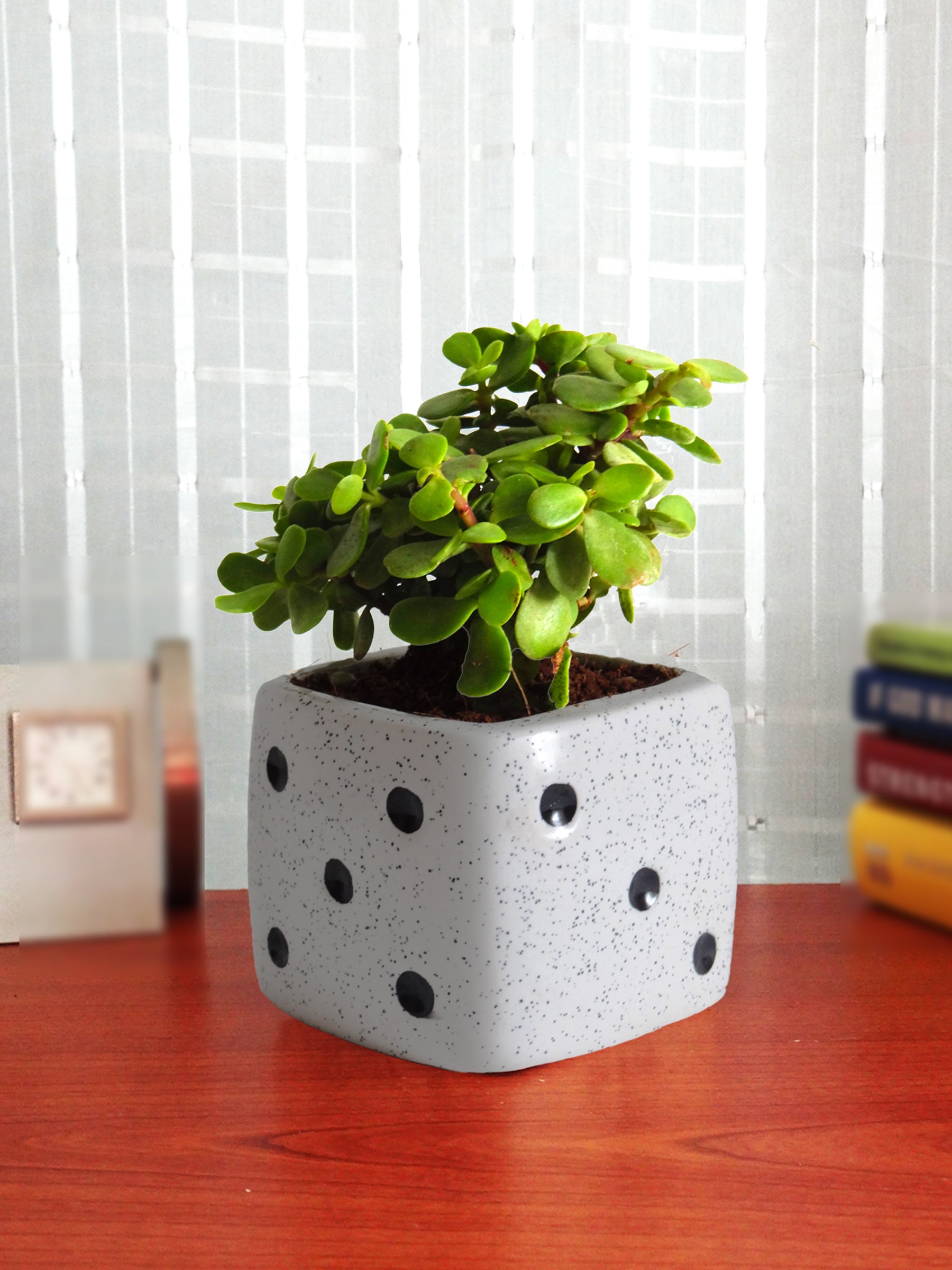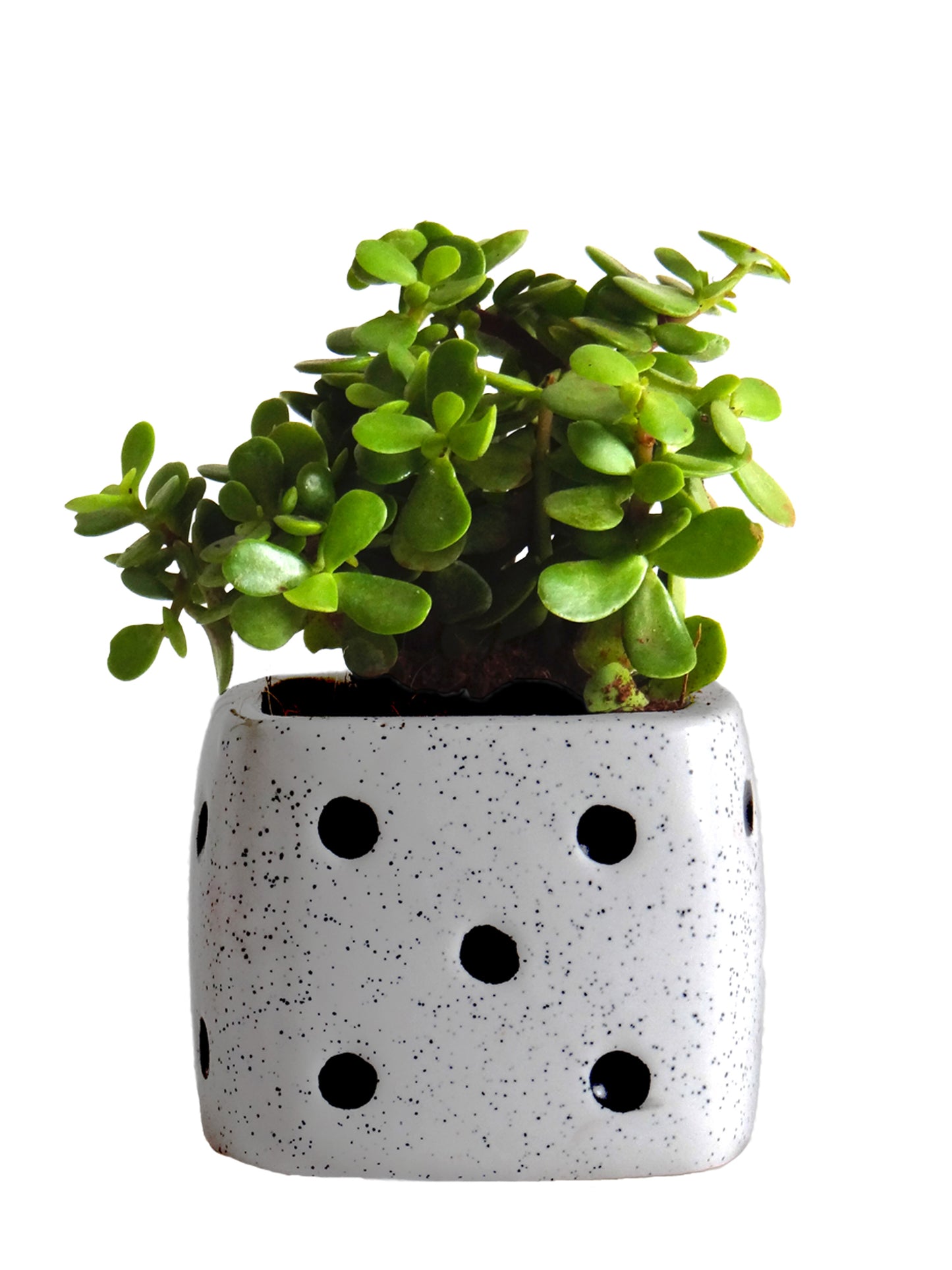 Good Luck Jade Plant in White Dice Ceramic Pot