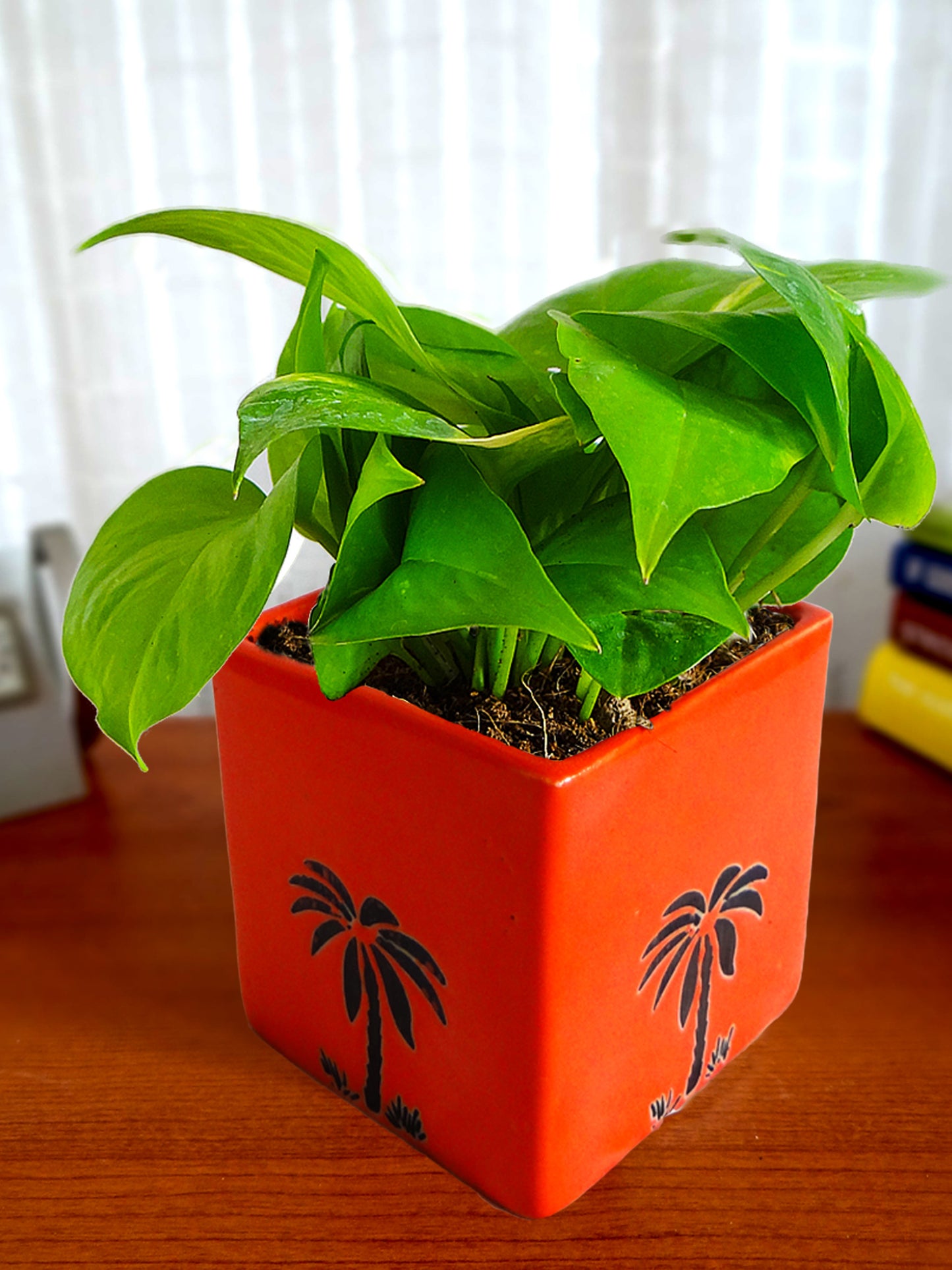 Good Luck Money Plant in Orange Cube Aroez Ceramic Pot
