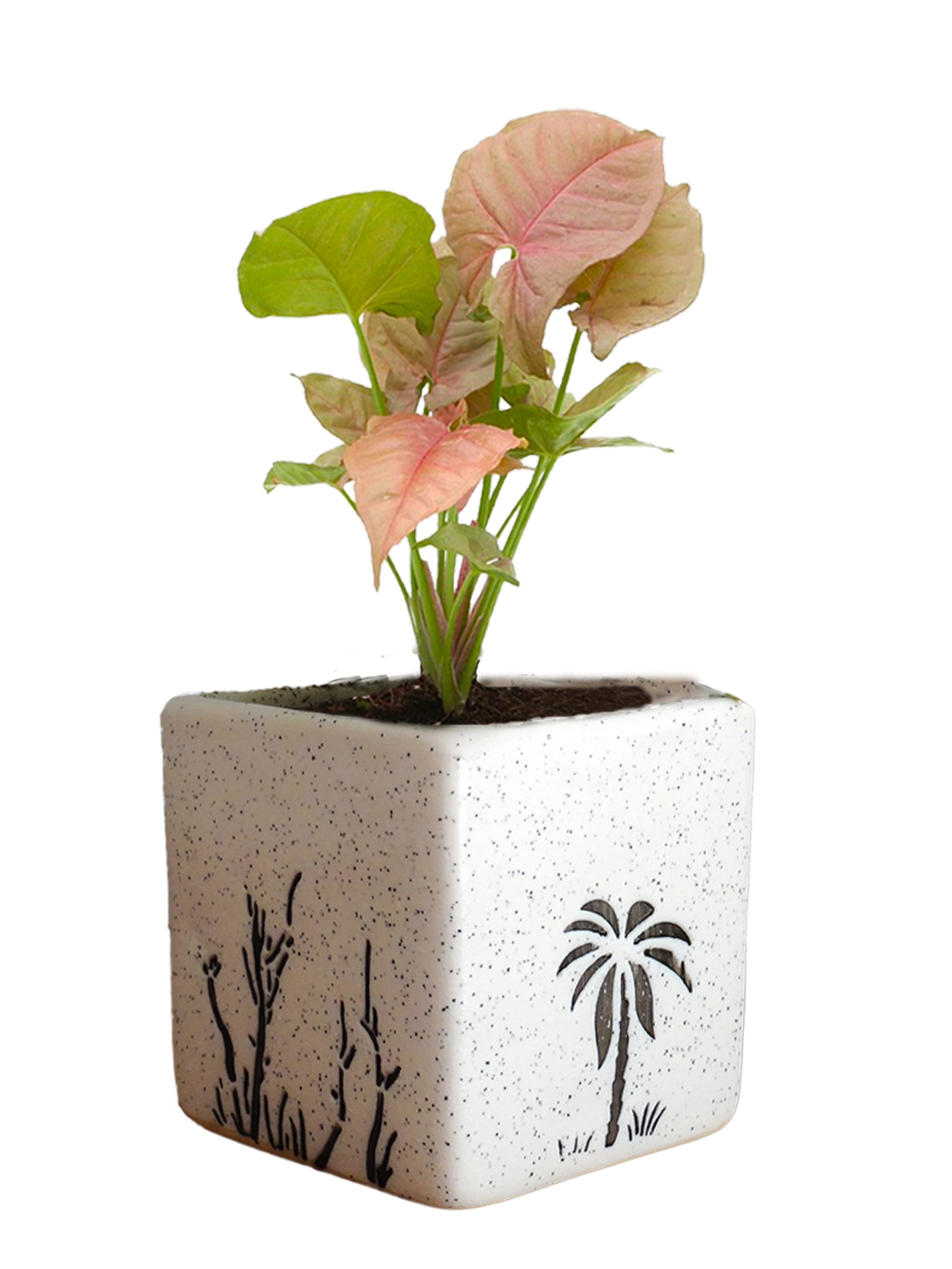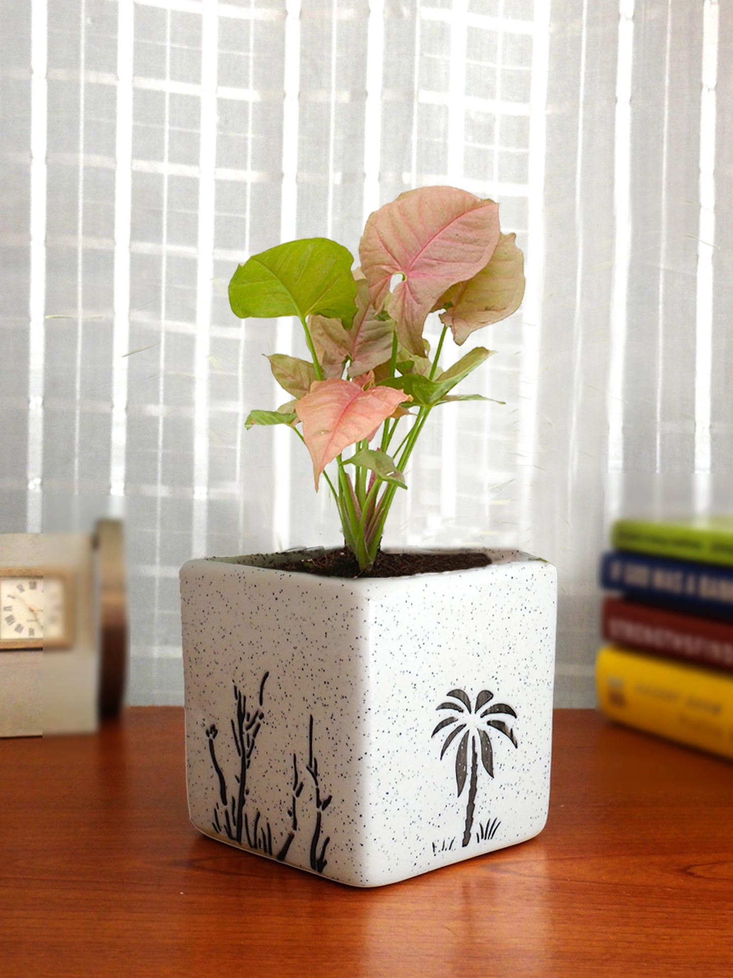 Good Luck Pink Syngonium Plant in White Square Aroez Ceramic Pot