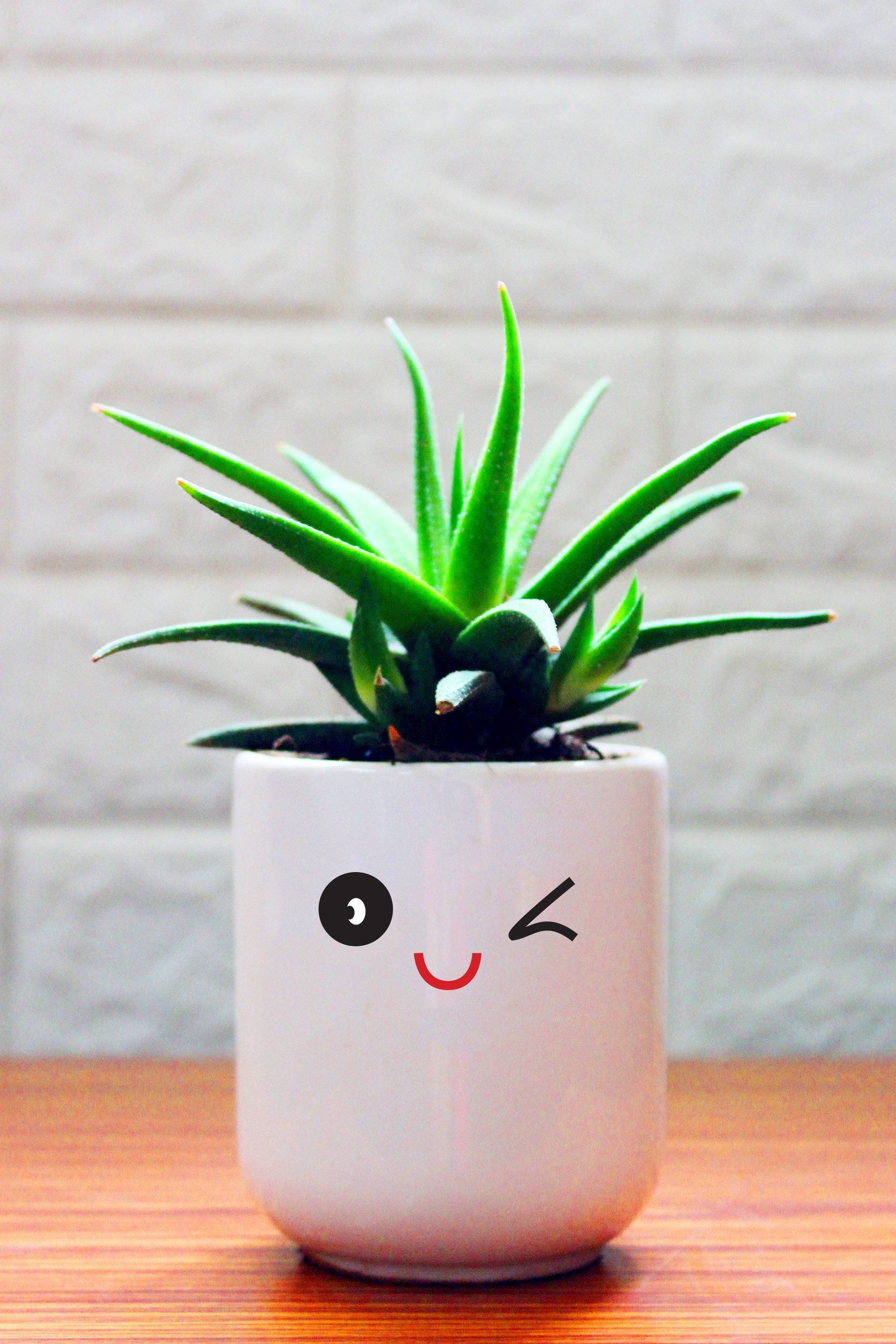 Haworthia Fasciata Succulent Plant in Wink Emoji White Ceramic Pot