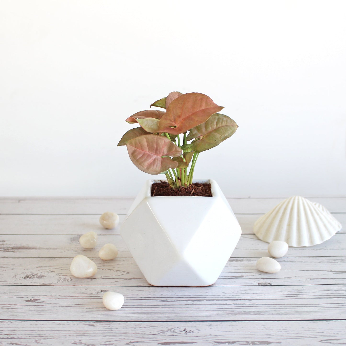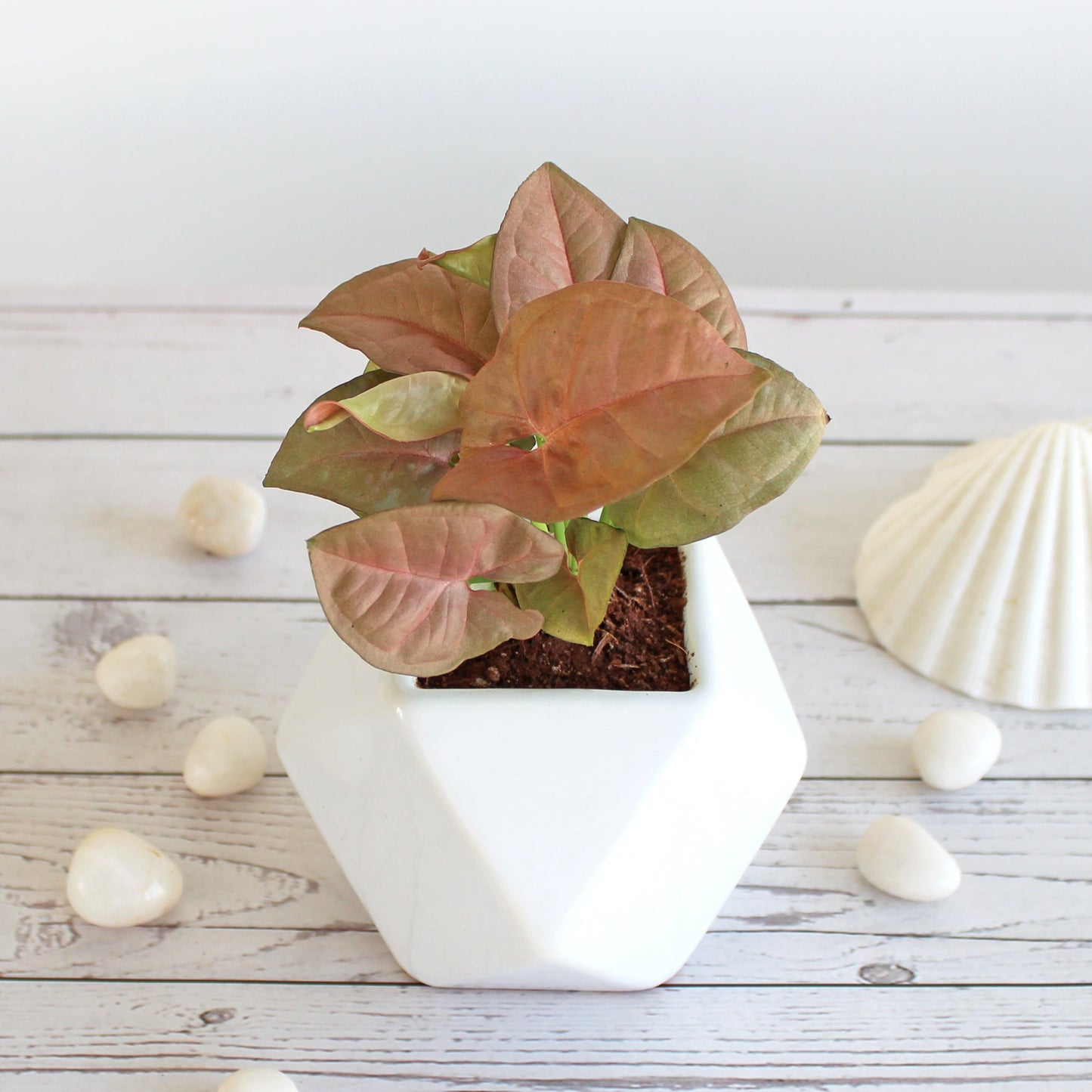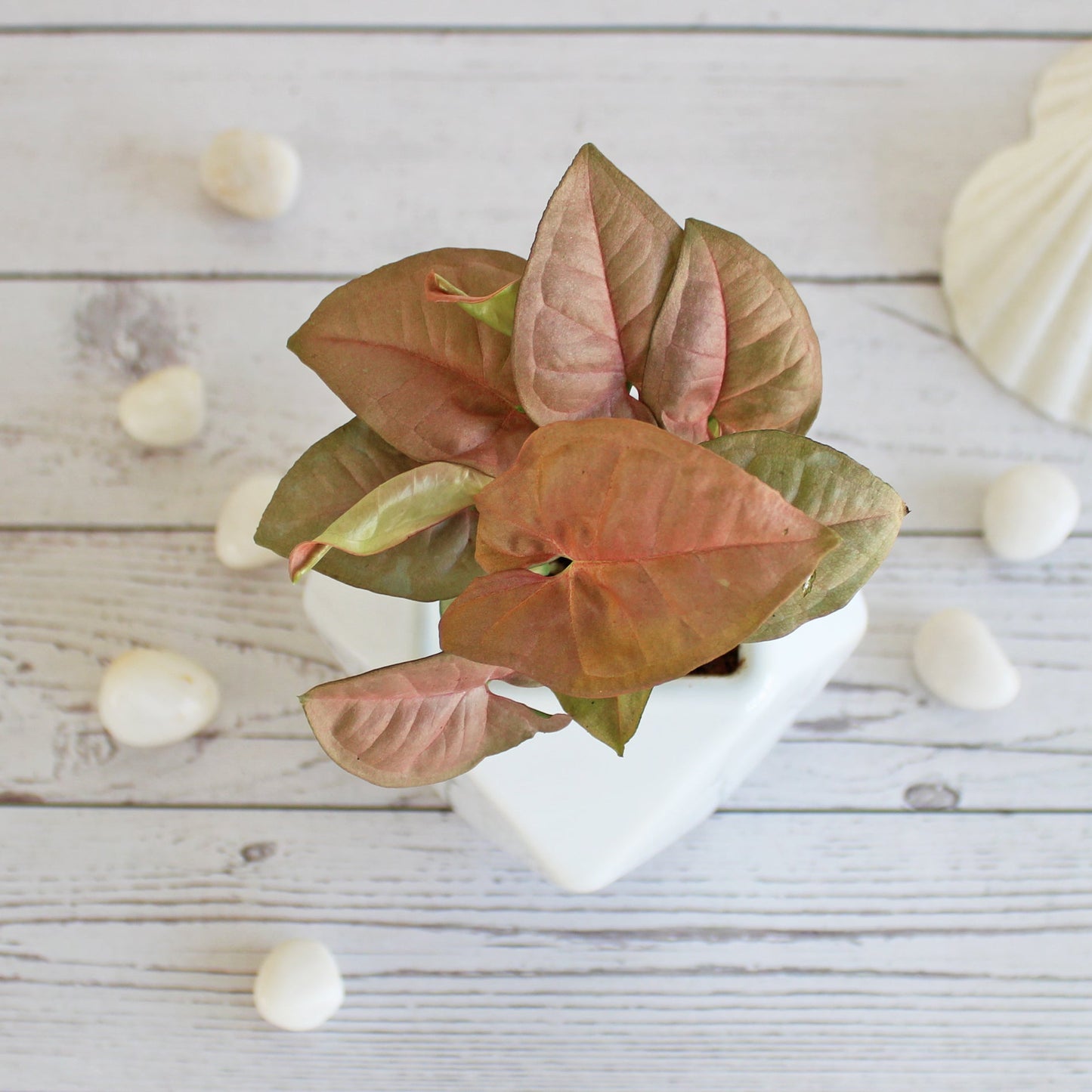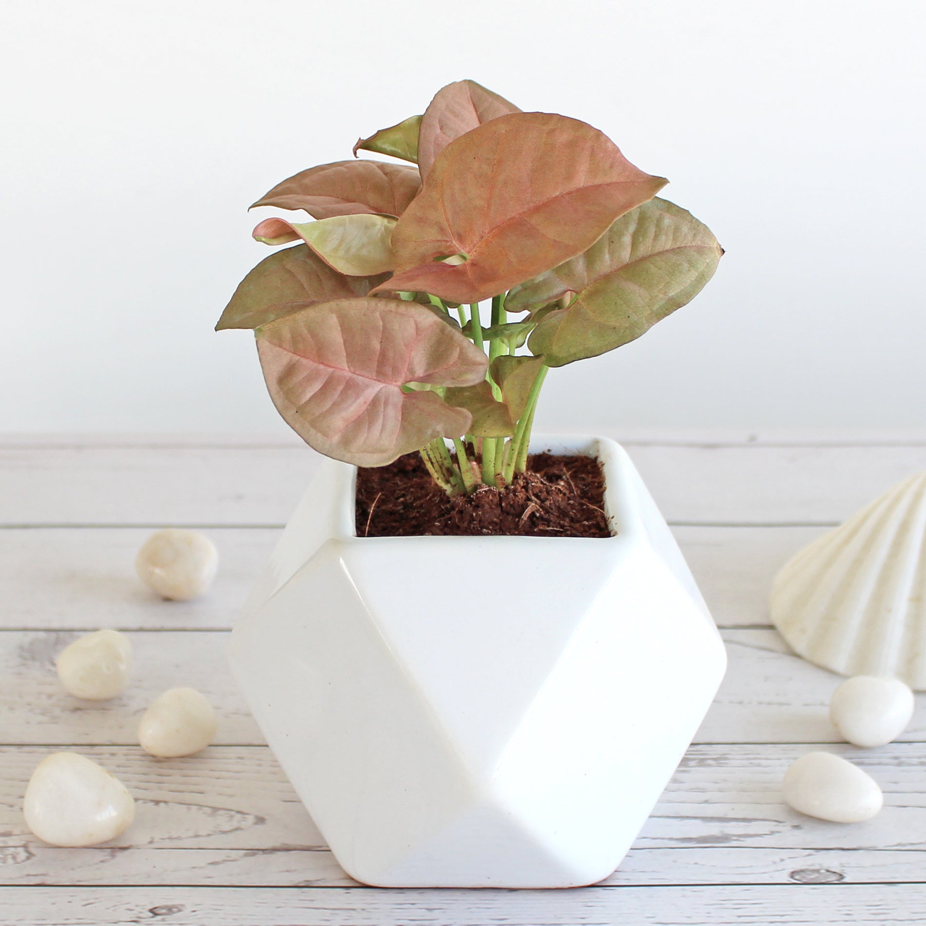 Rolling Nature Live Indoor Plant for Home Syngonium Pink in White Diamond Glacier Ceramic Pot