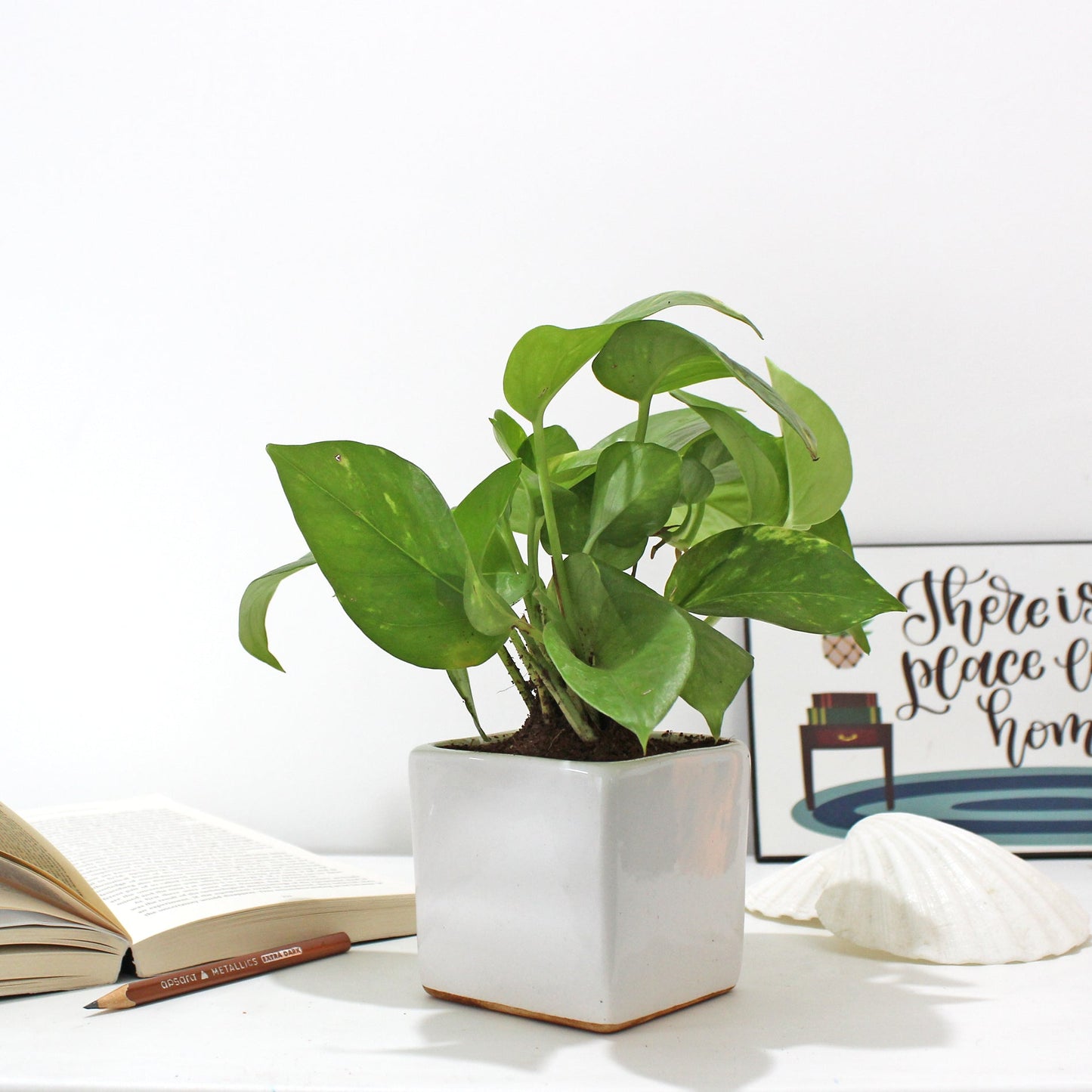 Rolling Nature Money Plant Air Purifying Good Luck Indoor Live Plant in White Square Glacier Ceramic Pot