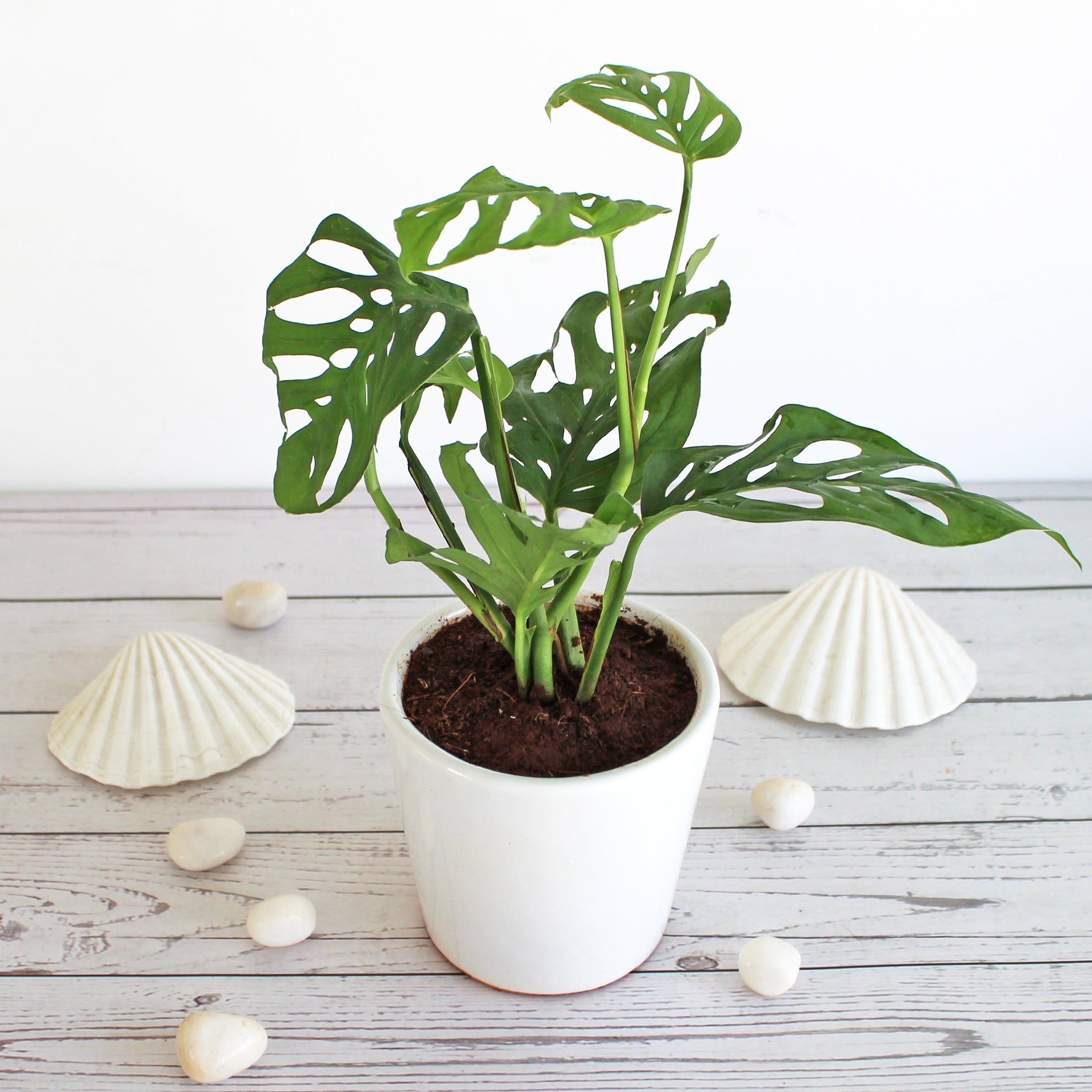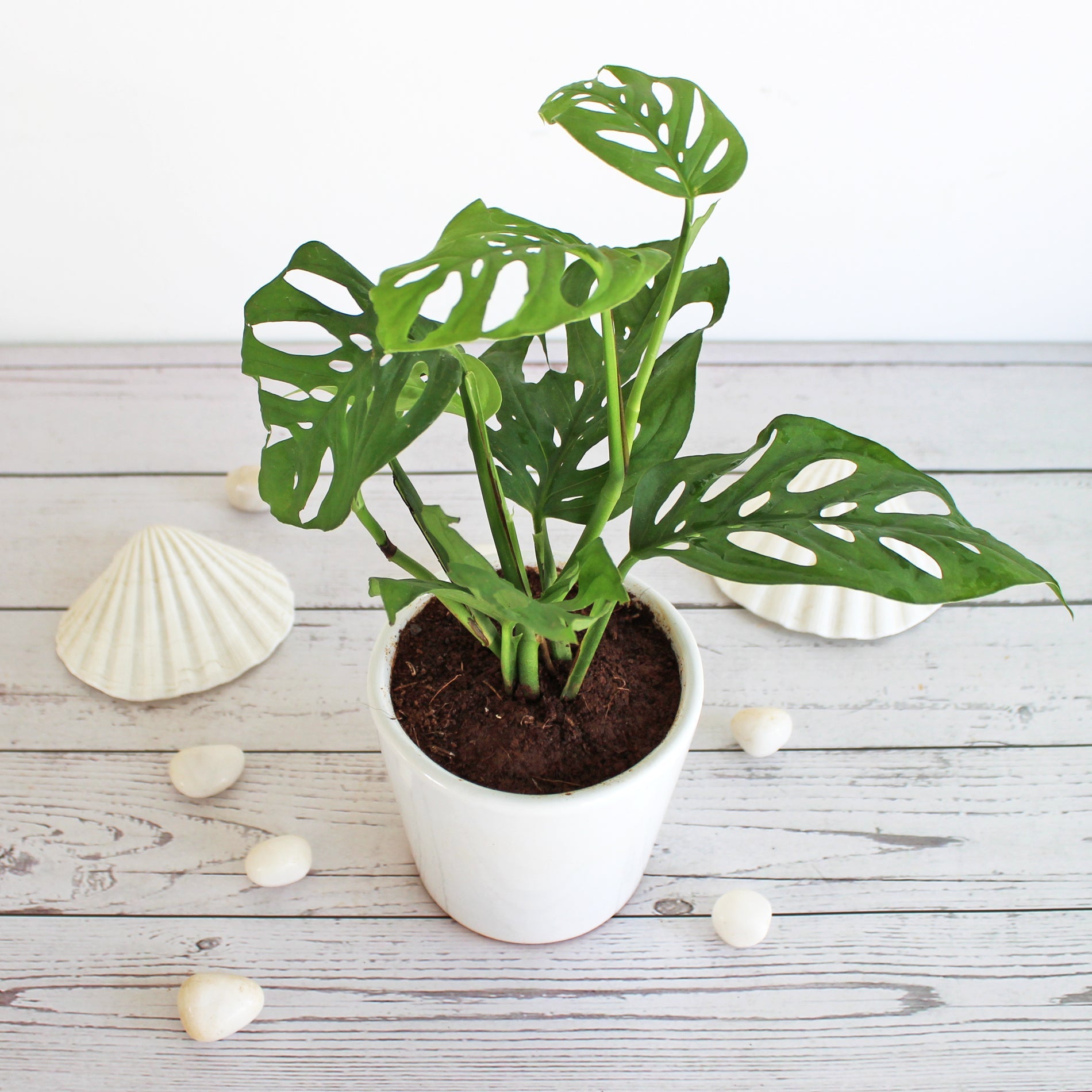 This unique broken heart plant is a stunner! It’s a must-have jungalicious vine. It looks like the heart shape leaves are naturally crafted with beautiful fenestrations! Hence the plant has the dramatic looks and the name is broken heart! The finely crafted leaves resemble paper cutting craft and look so intricate yet fragile. However don’t take this plant as a weakling! It’s surprisingly very easy to care for beginners and experts. This plant with exotic appearance will stay in good health with proper care. It is sometimes called as broken heart philodendron. However it is Monstera Adansonii and looks like miniature Monstera Deliciosa. Adansonii is not different from Monstera friedrichsthalii, it’s generally used for the exact same plant in very initial age as a synonym. It immediately accentuates your indoor home décor with tropical feel in rolling nature decorative glossy ceramic planters. The broken heart leaf plant is also called as “Swiss Cheese Plant” owing to its unique shape of leaves and leaf patterns. Surprisingly they are “fast growers” and you will love the bushy effect along with trailing vines. The leaves are dark green, leathery and glossy. These plants love to vine and climb. If you desire, you can train your Monstera Adansonii to climb up a stake or a wall. Botanists believe that the holes in its leaves help the plant to stand up to high winds and allow light to pass through to lower parts of the plant in its natural environment.