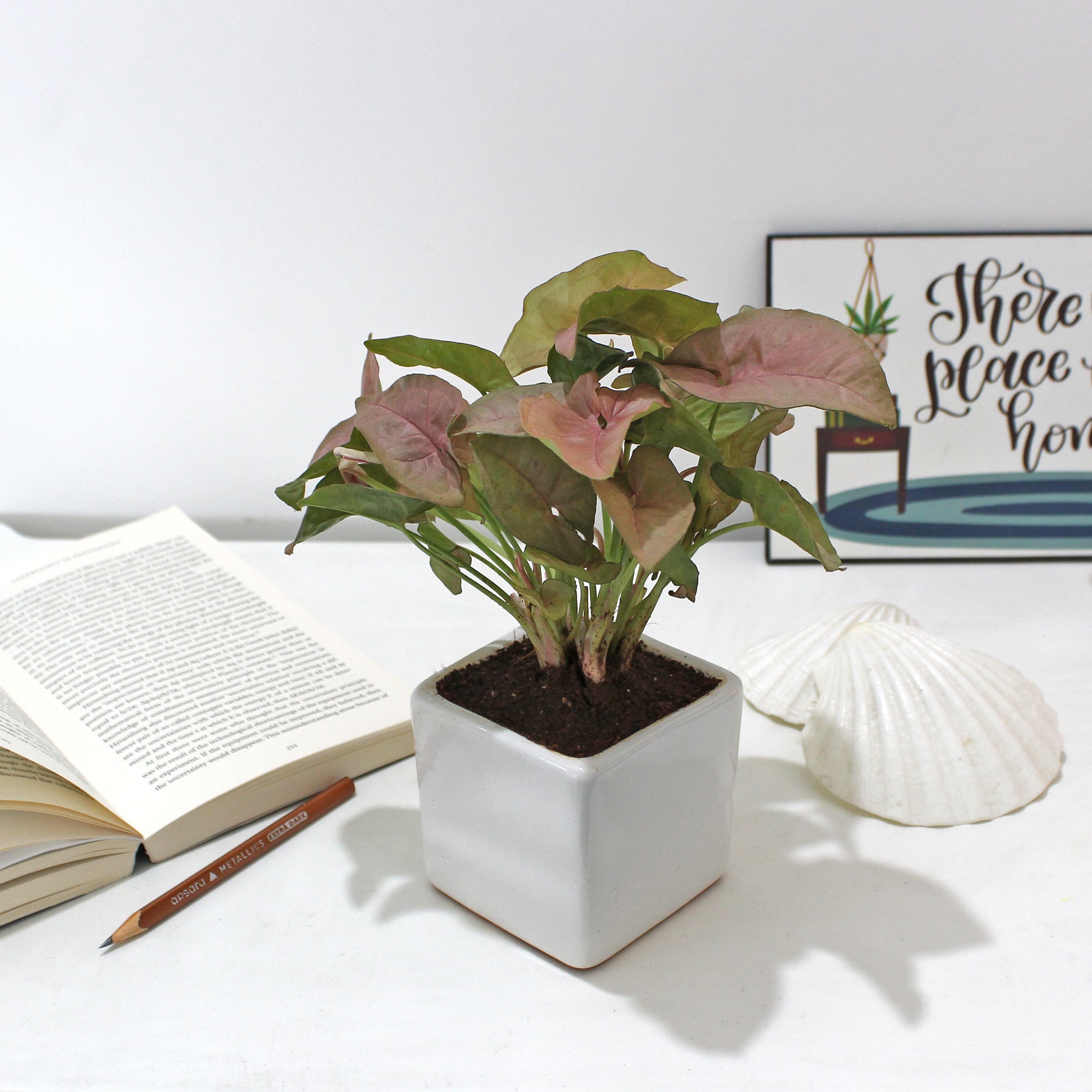 Rolling Nature Syngonium Pink Air Purifying Good Luck Indoor Live Plant in White Square Glacier Ceramic Pot